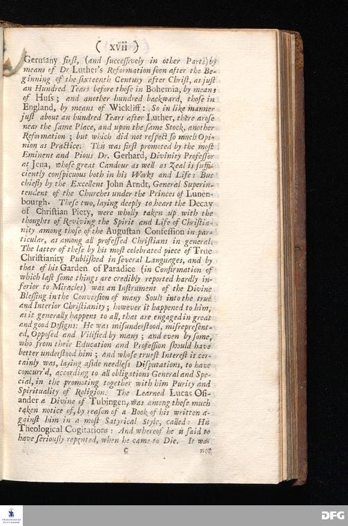 Pietas Hallensis: Being an Historical Narration Of the wonderful FOOT-STEPS OF Divine Providence In Erecting, Carrying on, and Building the Orphan-House, And other charitable Institutions, at Glaucha near Hall in Saxony, Without any visible FUND to support it. By Augustus Hermannus Franck; Professor of Divinity in the Frederician University of Hall, Pastor of Glaucha, and Director of the Pious Foundations there. Continued to the beginning of the Year MDCCII, In a Letter to a Friend. And an APPENDIX giving a more clear and full View of the Progress of Learning and Christian Piety, both in the said University, and in the Royal Collegiate Schools. To which is added Several Considerable Papers relating to this WORK, Written by the King of PRUSSIA. LONDON, Printed by Joseph Downing, for R. Burrough at the Sun and Moon in Cornhill, near the Royal Exchange, 1705