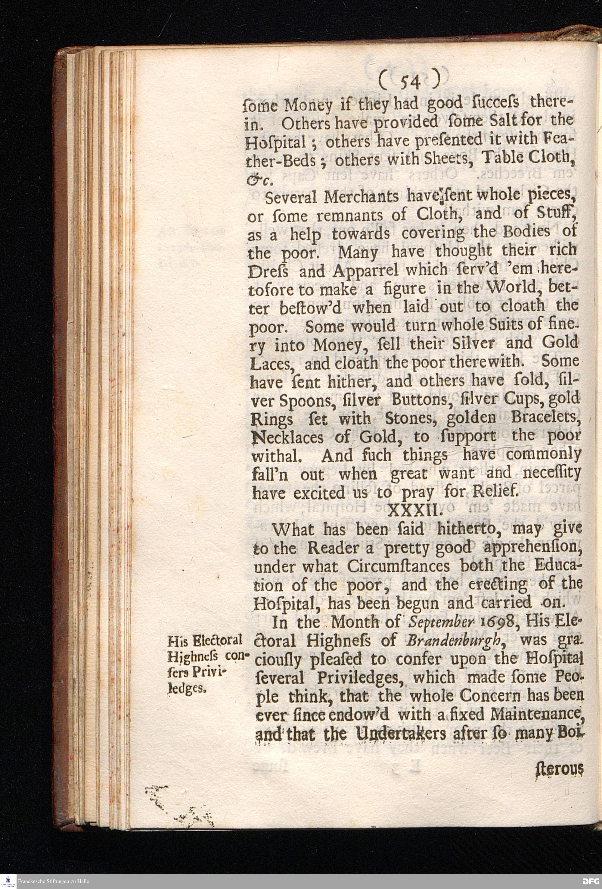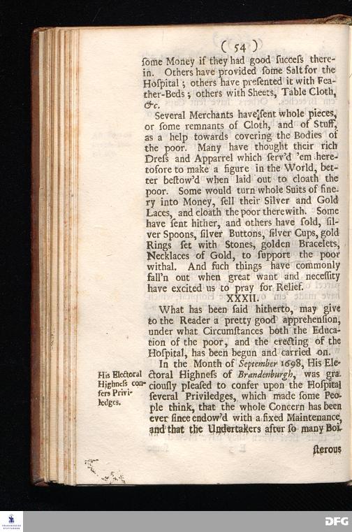 Pietas Hallensis: Being an Historical Narration Of the wonderful FOOT-STEPS OF Divine Providence In Erecting, Carrying on, and Building the Orphan-House, And other charitable Institutions, at Glaucha near Hall in Saxony, Without any visible FUND to support it. By Augustus Hermannus Franck; Professor of Divinity in the Frederician University of Hall, Pastor of Glaucha, and Director of the Pious Foundations there. Continued to the beginning of the Year MDCCII, In a Letter to a Friend. And an APPENDIX giving a more clear and full View of the Progress of Learning and Christian Piety, both in the said University, and in the Royal Collegiate Schools. To which is added Several Considerable Papers relating to this WORK, Written by the King of PRUSSIA. LONDON, Printed by Joseph Downing, for R. Burrough at the Sun and Moon in Cornhill, near the Royal Exchange, 1705