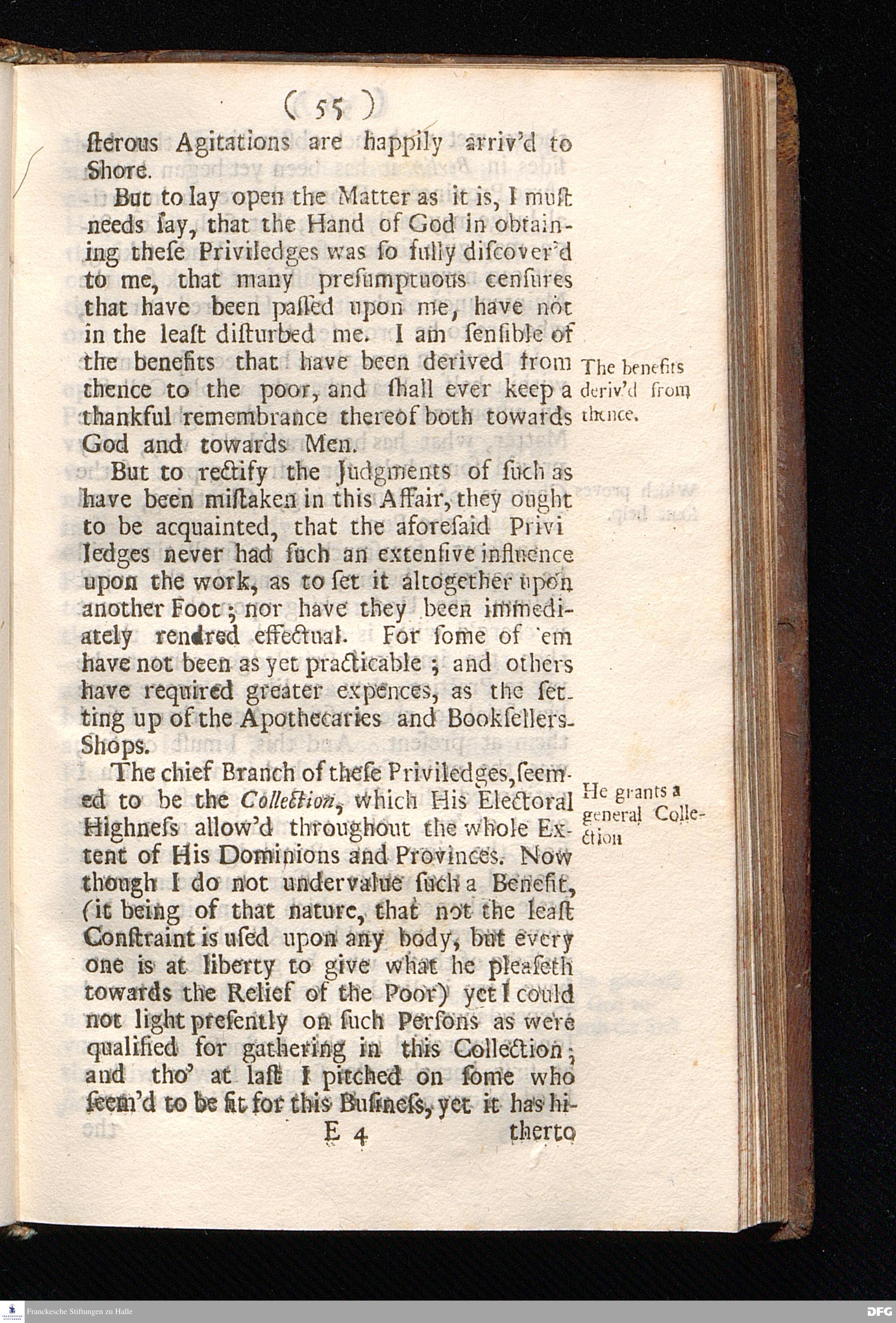 Pietas Hallensis: Being an Historical Narration Of the wonderful FOOT-STEPS OF Divine Providence In Erecting, Carrying on, and Building the Orphan-House, And other charitable Institutions, at Glaucha near Hall in Saxony, Without any visible FUND to support it. By Augustus Hermannus Franck; Professor of Divinity in the Frederician University of Hall, Pastor of Glaucha, and Director of the Pious Foundations there. Continued to the beginning of the Year MDCCII, In a Letter to a Friend. And an APPENDIX giving a more clear and full View of the Progress of Learning and Christian Piety, both in the said University, and in the Royal Collegiate Schools. To which is added Several Considerable Papers relating to this WORK, Written by the King of PRUSSIA. LONDON, Printed by Joseph Downing, for R. Burrough at the Sun and Moon in Cornhill, near the Royal Exchange, 1705