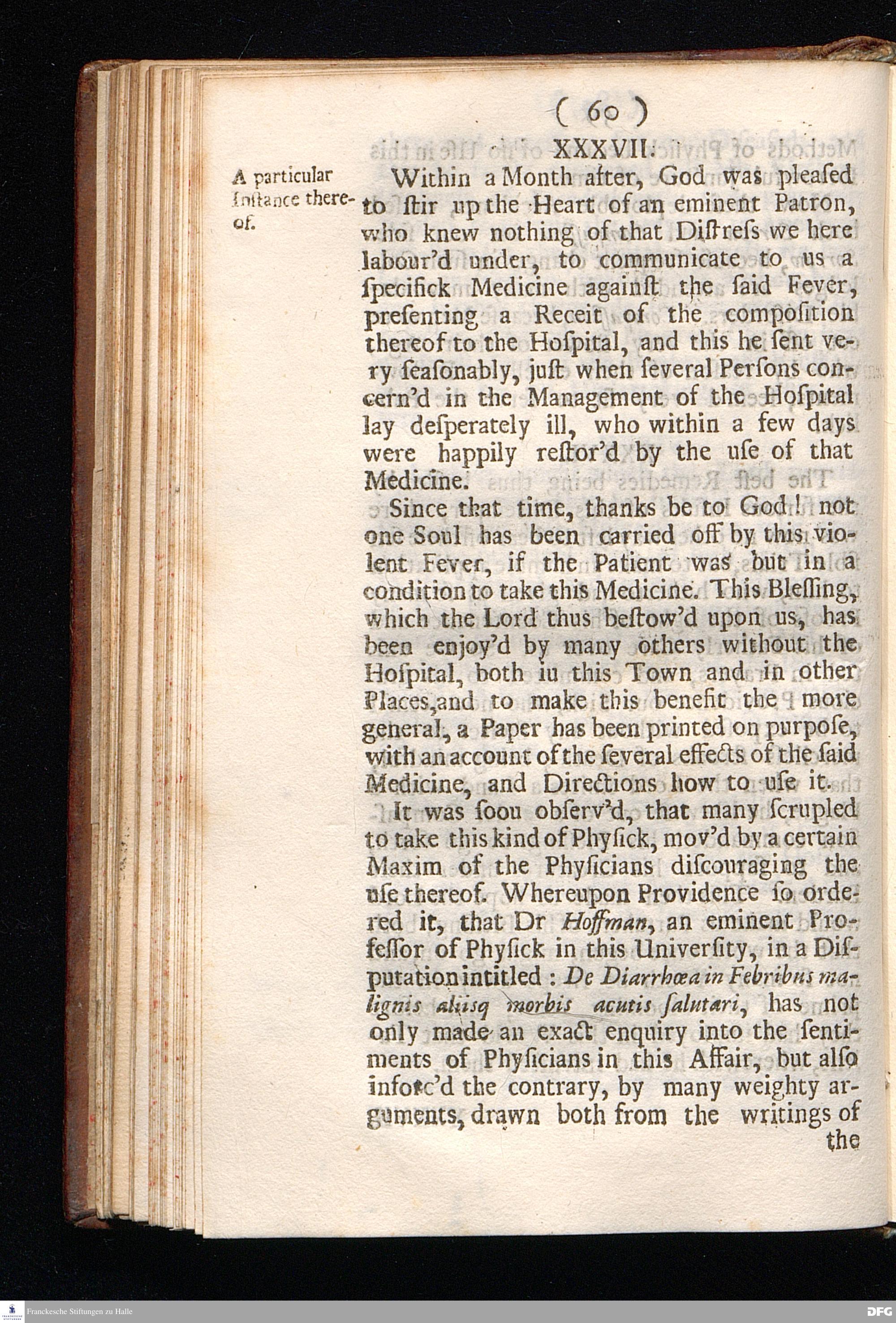 Pietas Hallensis: Being an Historical Narration Of the wonderful FOOT-STEPS OF Divine Providence In Erecting, Carrying on, and Building the Orphan-House, And other charitable Institutions, at Glaucha near Hall in Saxony, Without any visible FUND to support it. By Augustus Hermannus Franck; Professor of Divinity in the Frederician University of Hall, Pastor of Glaucha, and Director of the Pious Foundations there. Continued to the beginning of the Year MDCCII, In a Letter to a Friend. And an APPENDIX giving a more clear and full View of the Progress of Learning and Christian Piety, both in the said University, and in the Royal Collegiate Schools. To which is added Several Considerable Papers relating to this WORK, Written by the King of PRUSSIA. LONDON, Printed by Joseph Downing, for R. Burrough at the Sun and Moon in Cornhill, near the Royal Exchange, 1705