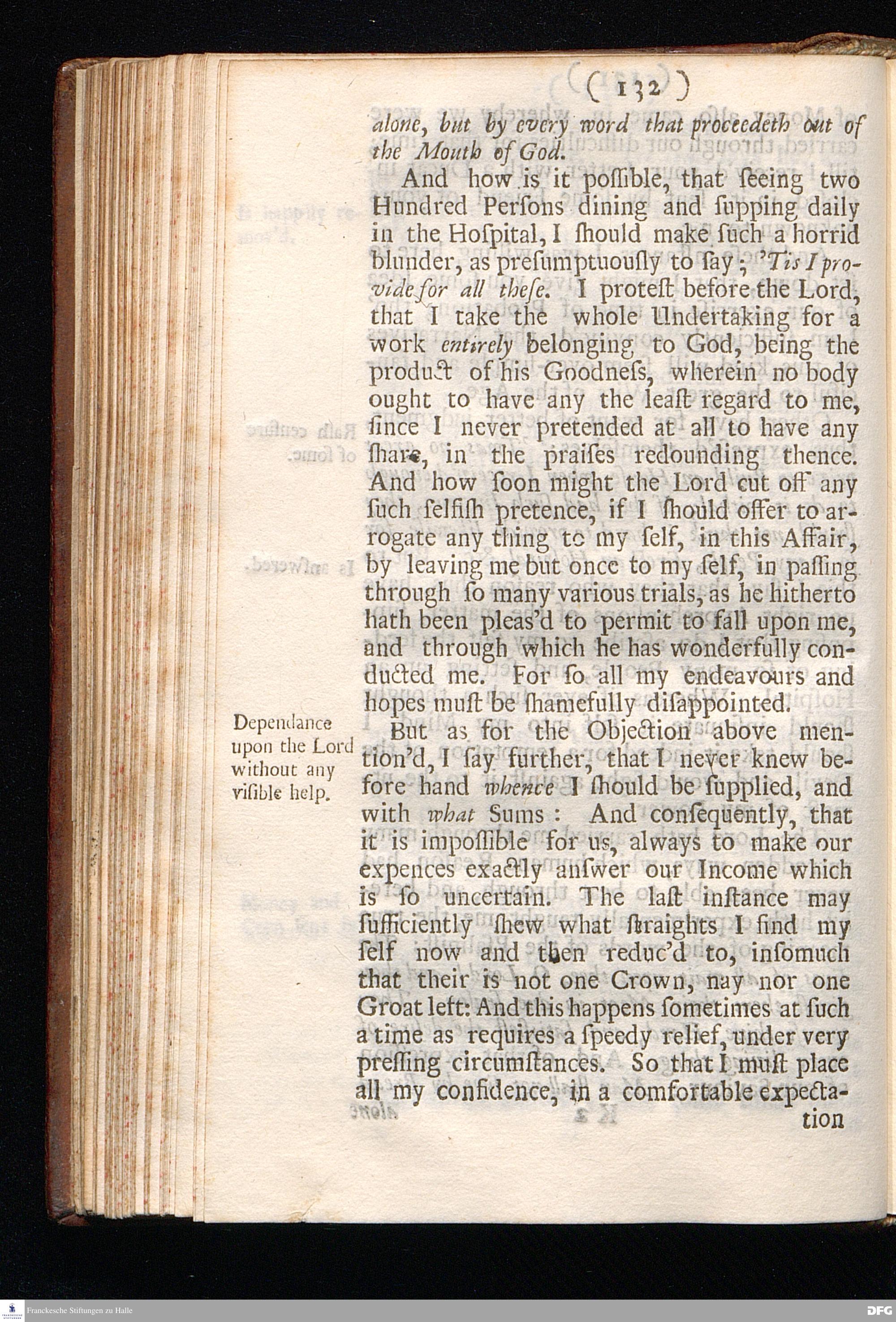Pietas Hallensis: Being an Historical Narration Of the wonderful FOOT-STEPS OF Divine Providence In Erecting, Carrying on, and Building the Orphan-House, And other charitable Institutions, at Glaucha near Hall in Saxony, Without any visible FUND to support it. By Augustus Hermannus Franck; Professor of Divinity in the Frederician University of Hall, Pastor of Glaucha, and Director of the Pious Foundations there. Continued to the beginning of the Year MDCCII, In a Letter to a Friend. And an APPENDIX giving a more clear and full View of the Progress of Learning and Christian Piety, both in the said University, and in the Royal Collegiate Schools. To which is added Several Considerable Papers relating to this WORK, Written by the King of PRUSSIA. LONDON, Printed by Joseph Downing, for R. Burrough at the Sun and Moon in Cornhill, near the Royal Exchange, 1705