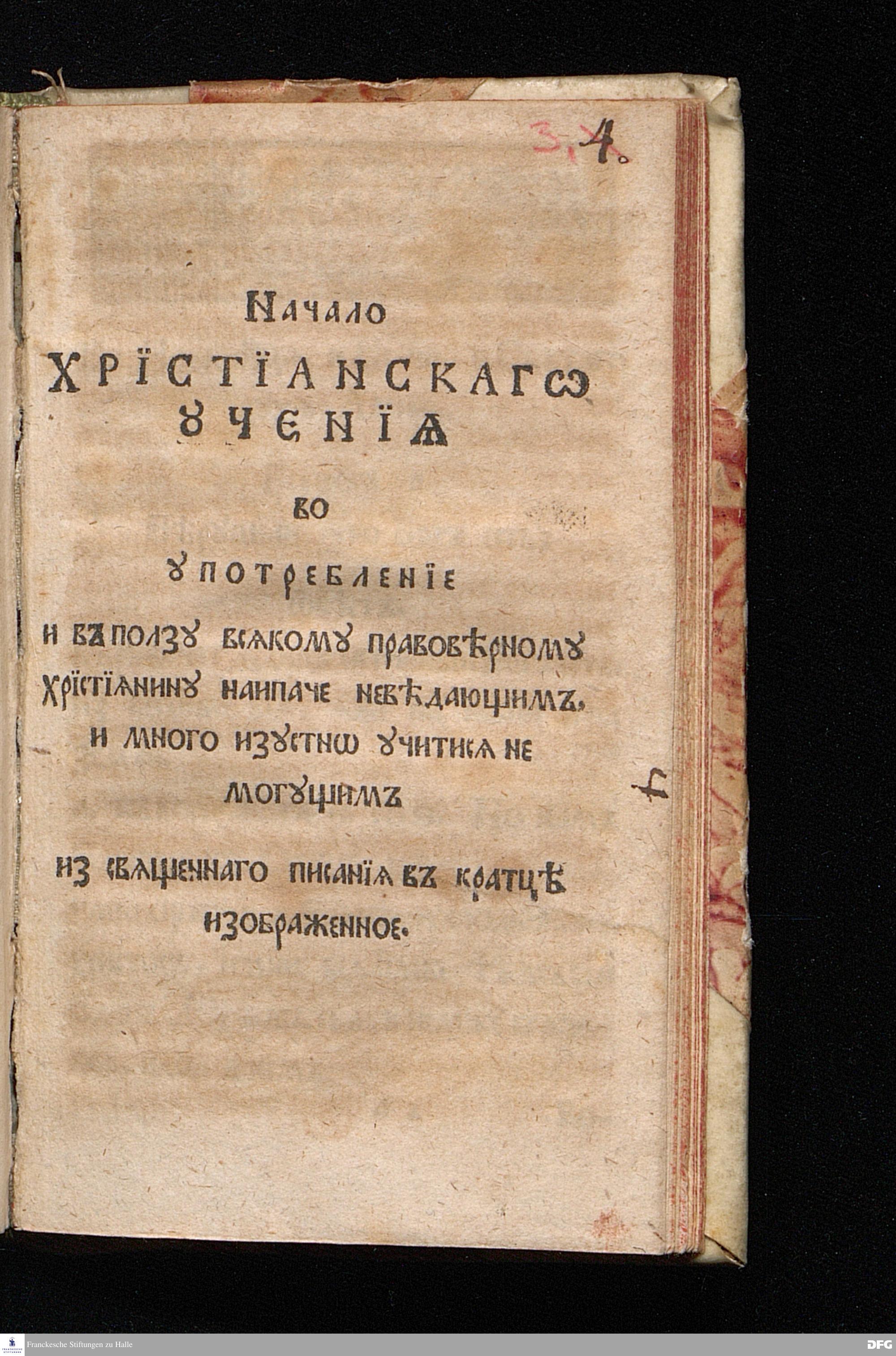 Nacalo Chrïstïanskago Ucenïja vo upotreblenïe i v polzu vsjakomu pravovernomu Chrïstïjaninu, naipace nevedajuscim i mnogo izustno ucitisja ne moguscim iz svjascennago pisanïja v kratce izobrazennoje