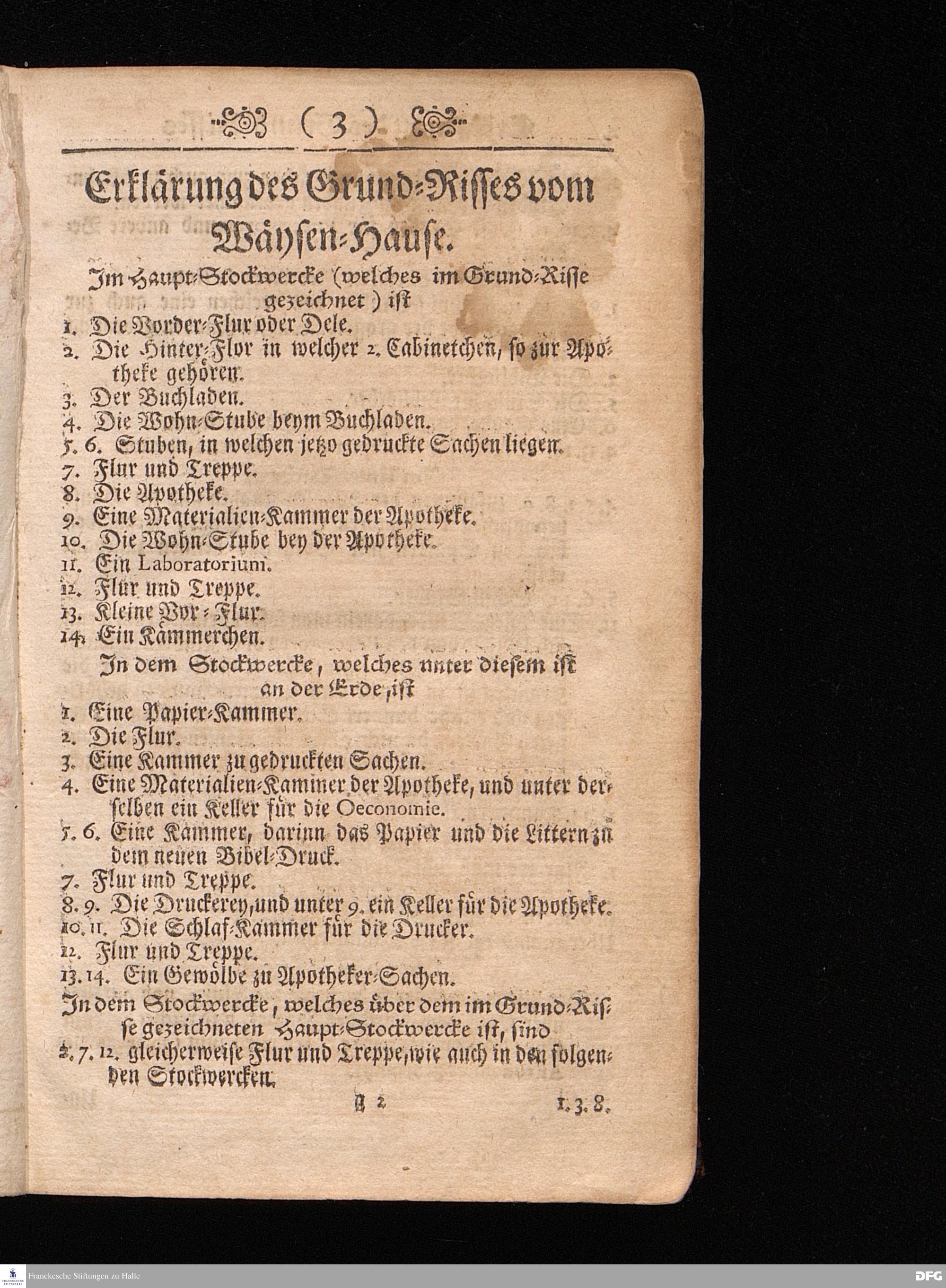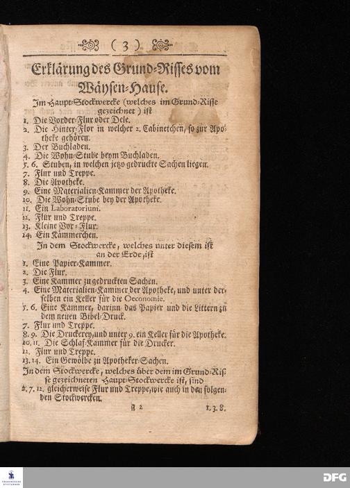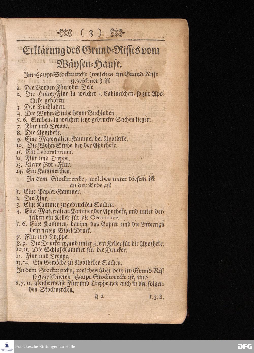 Segens=volle Fußstapfen des noch lebenden und waltenden liebrei=│chen und getreuen GOttes, Zur Beschämung des Unglaubens und Stärckung des Glaubens, entdecket durch eine wahrhafte und umständliche Nachricht von dem Wäysen=Hause und übrigen Anstalten zu Glaucha vor Halle; Welche Im Jahr 1701. zum Druck befördert, ietzo aber zum dritten mal ediret, und bis auf gegenwärtiges Jahr fortgesetzet von August Hermann Francken, S.Theol.Prof.und Past. HALLE, in Verlegung des Wäysen=Hauses, MDCCIX.