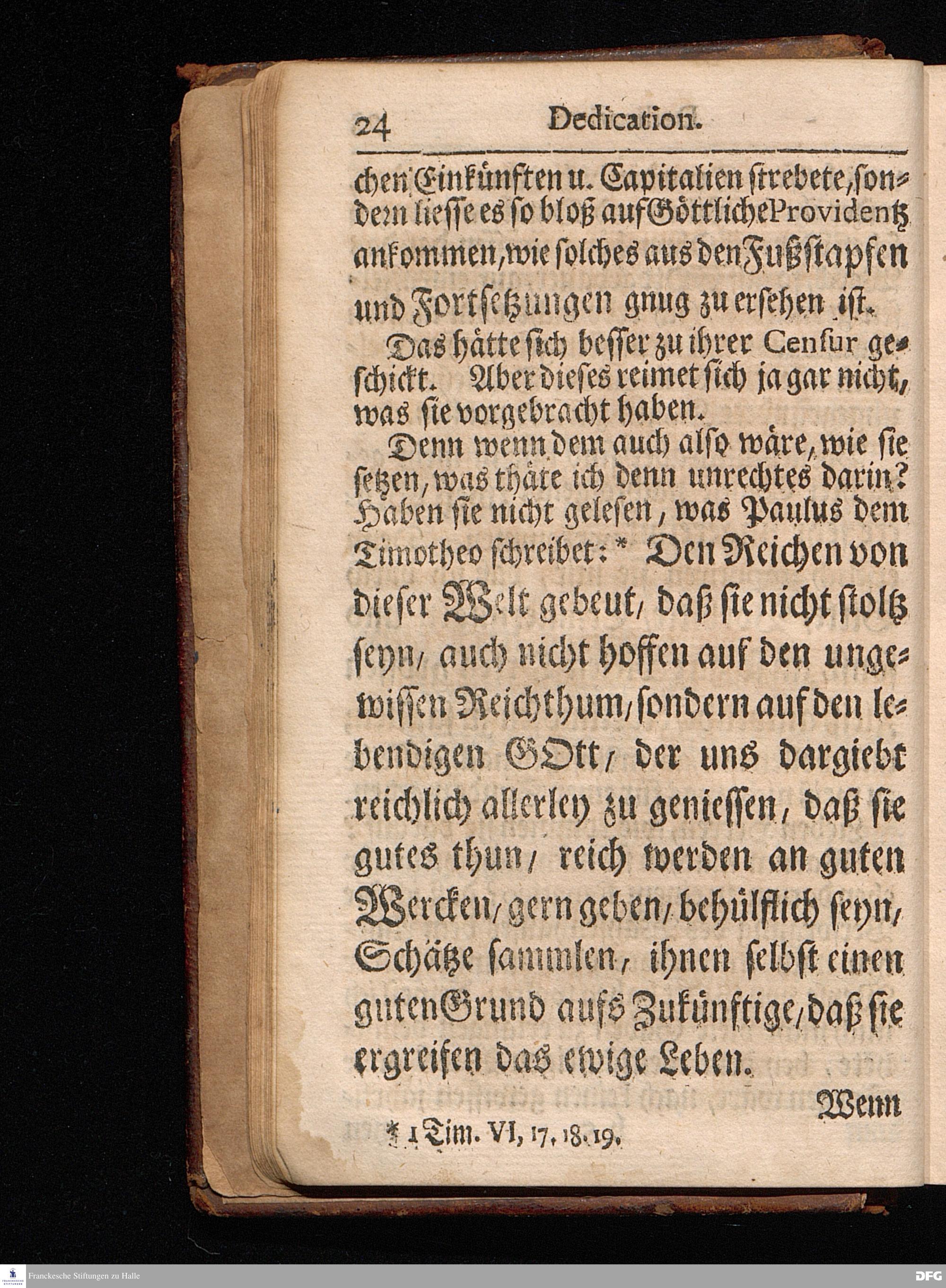 Segens=volle Fußstapfen des noch lebenden und waltenden liebrei=│chen und getreuen GOttes, Zur Beschämung des Unglaubens und Stärckung des Glaubens, entdecket durch eine wahrhafte und umständliche Nachricht von dem Wäysen=Hause und übrigen Anstalten zu Glaucha vor Halle; Welche Im Jahr 1701. zum Druck befördert, ietzo aber zum dritten mal ediret, und bis auf gegenwärtiges Jahr fortgesetzet von August Hermann Francken, S.Theol.Prof.und Past. HALLE, in Verlegung des Wäysen=Hauses, MDCCIX.
