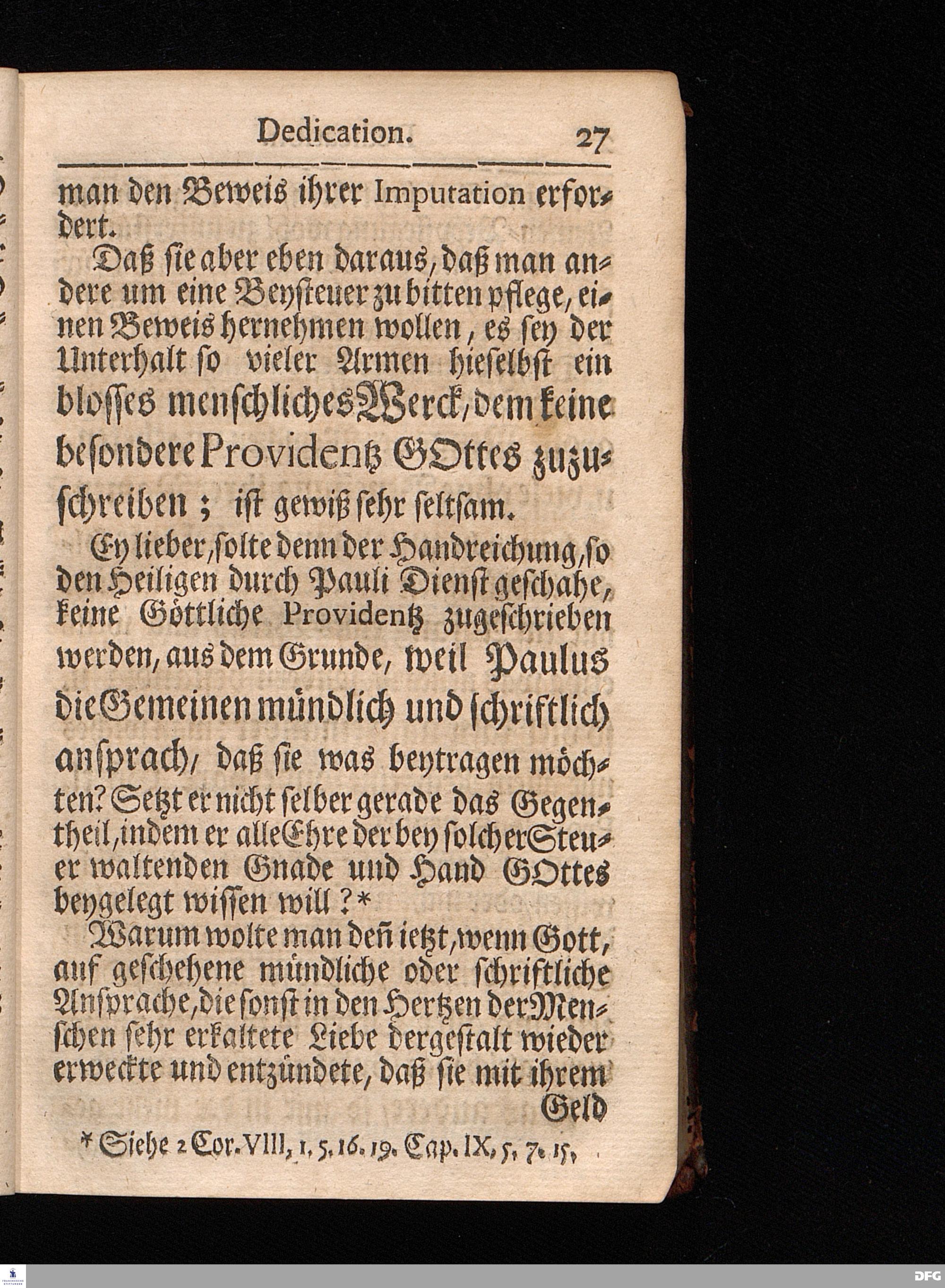 Segens=volle Fußstapfen des noch lebenden und waltenden liebrei=│chen und getreuen GOttes, Zur Beschämung des Unglaubens und Stärckung des Glaubens, entdecket durch eine wahrhafte und umständliche Nachricht von dem Wäysen=Hause und übrigen Anstalten zu Glaucha vor Halle; Welche Im Jahr 1701. zum Druck befördert, ietzo aber zum dritten mal ediret, und bis auf gegenwärtiges Jahr fortgesetzet von August Hermann Francken, S.Theol.Prof.und Past. HALLE, in Verlegung des Wäysen=Hauses, MDCCIX.