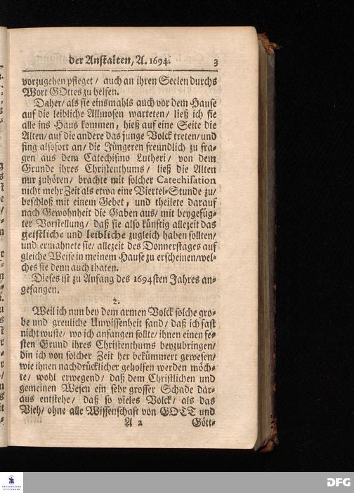 Segens=volle Fußstapfen des noch lebenden und waltenden liebrei=│chen und getreuen GOttes, Zur Beschämung des Unglaubens und Stärckung des Glaubens, entdecket durch eine wahrhafte und umständliche Nachricht von dem Wäysen=Hause und übrigen Anstalten zu Glaucha vor Halle; Welche Im Jahr 1701. zum Druck befördert, ietzo aber zum dritten mal ediret, und bis auf gegenwärtiges Jahr fortgesetzet von August Hermann Francken, S.Theol.Prof.und Past. HALLE, in Verlegung des Wäysen=Hauses, MDCCIX.
