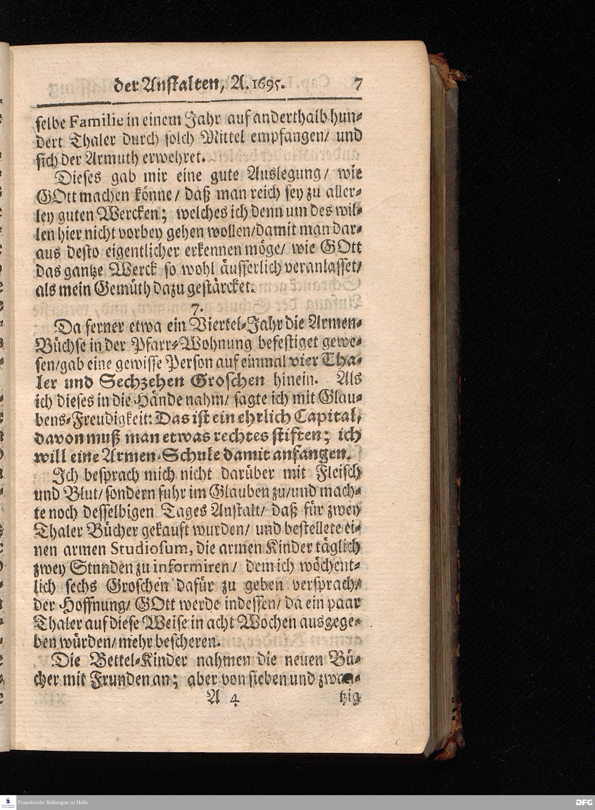 Segens=volle Fußstapfen des noch lebenden und waltenden liebrei=│chen und getreuen GOttes, Zur Beschämung des Unglaubens und Stärckung des Glaubens, entdecket durch eine wahrhafte und umständliche Nachricht von dem Wäysen=Hause und übrigen Anstalten zu Glaucha vor Halle; Welche Im Jahr 1701. zum Druck befördert, ietzo aber zum dritten mal ediret, und bis auf gegenwärtiges Jahr fortgesetzet von August Hermann Francken, S.Theol.Prof.und Past. HALLE, in Verlegung des Wäysen=Hauses, MDCCIX.