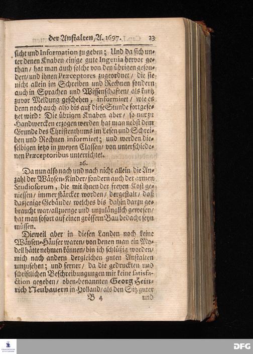 Segens=volle Fußstapfen des noch lebenden und waltenden liebrei=│chen und getreuen GOttes, Zur Beschämung des Unglaubens und Stärckung des Glaubens, entdecket durch eine wahrhafte und umständliche Nachricht von dem Wäysen=Hause und übrigen Anstalten zu Glaucha vor Halle; Welche Im Jahr 1701. zum Druck befördert, ietzo aber zum dritten mal ediret, und bis auf gegenwärtiges Jahr fortgesetzet von August Hermann Francken, S.Theol.Prof.und Past. HALLE, in Verlegung des Wäysen=Hauses, MDCCIX.