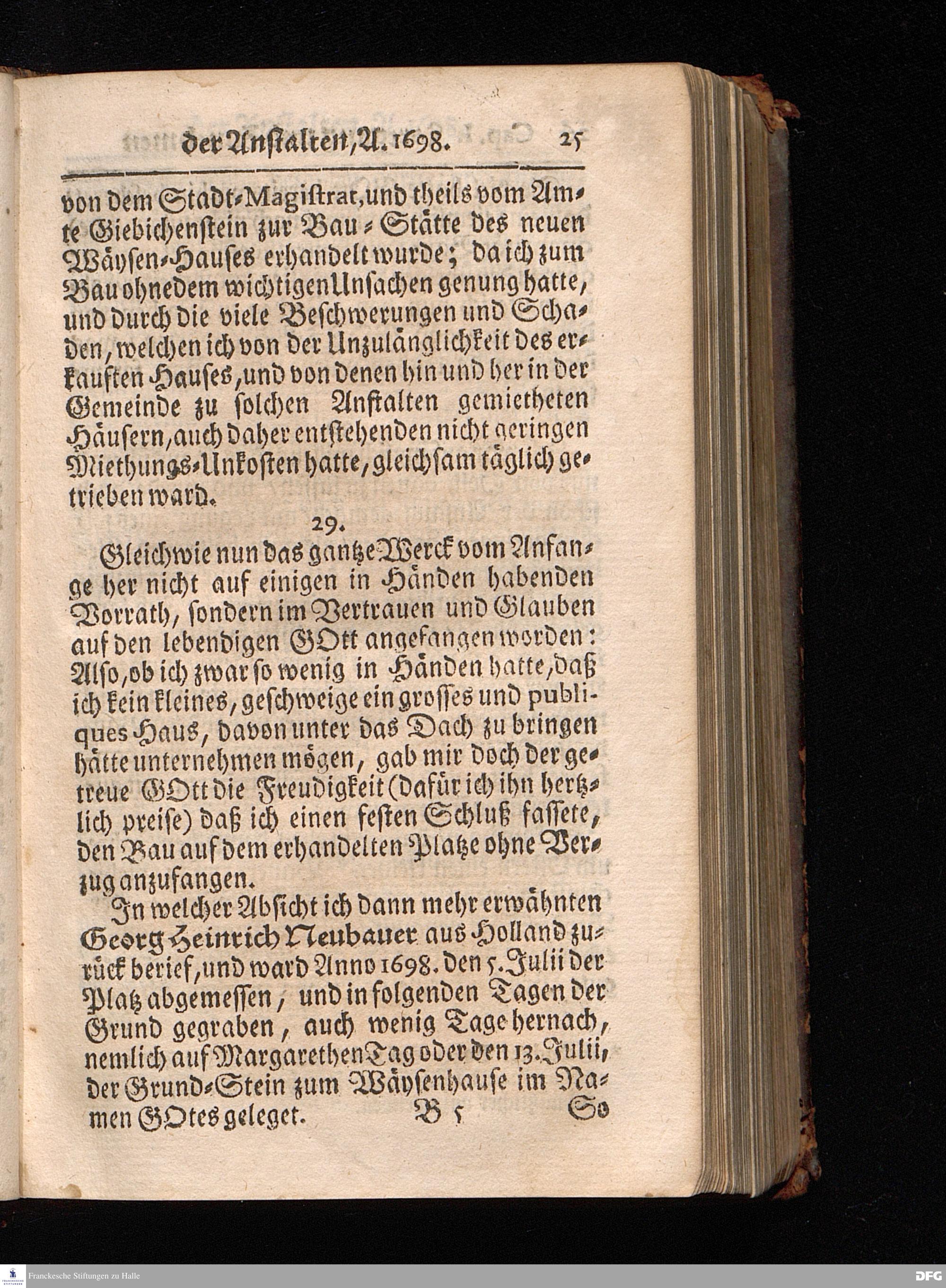 Segens=volle Fußstapfen des noch lebenden und waltenden liebrei=│chen und getreuen GOttes, Zur Beschämung des Unglaubens und Stärckung des Glaubens, entdecket durch eine wahrhafte und umständliche Nachricht von dem Wäysen=Hause und übrigen Anstalten zu Glaucha vor Halle; Welche Im Jahr 1701. zum Druck befördert, ietzo aber zum dritten mal ediret, und bis auf gegenwärtiges Jahr fortgesetzet von August Hermann Francken, S.Theol.Prof.und Past. HALLE, in Verlegung des Wäysen=Hauses, MDCCIX.