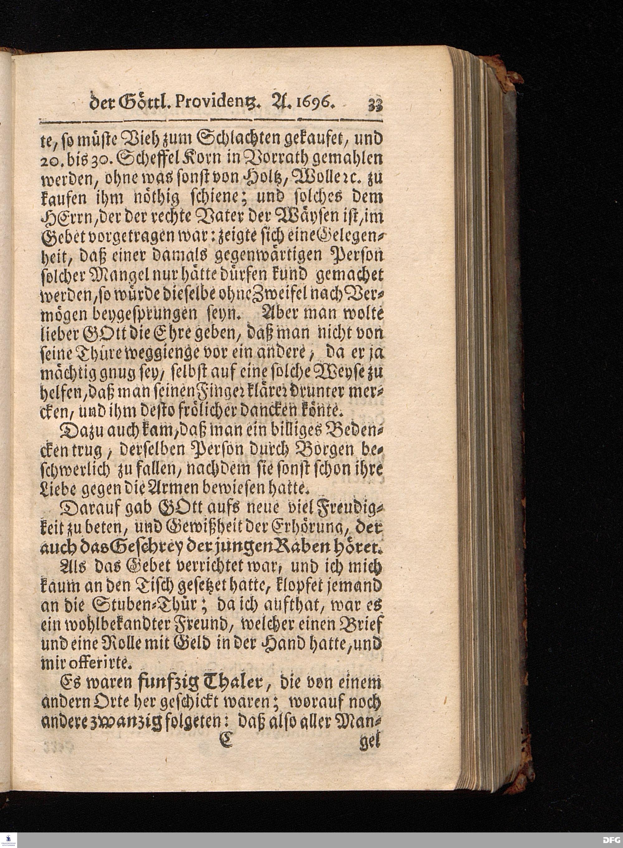 Segens=volle Fußstapfen des noch lebenden und waltenden liebrei=│chen und getreuen GOttes, Zur Beschämung des Unglaubens und Stärckung des Glaubens, entdecket durch eine wahrhafte und umständliche Nachricht von dem Wäysen=Hause und übrigen Anstalten zu Glaucha vor Halle; Welche Im Jahr 1701. zum Druck befördert, ietzo aber zum dritten mal ediret, und bis auf gegenwärtiges Jahr fortgesetzet von August Hermann Francken, S.Theol.Prof.und Past. HALLE, in Verlegung des Wäysen=Hauses, MDCCIX.