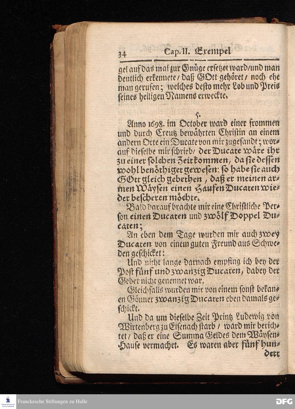 Segens=volle Fußstapfen des noch lebenden und waltenden liebrei=│chen und getreuen GOttes, Zur Beschämung des Unglaubens und Stärckung des Glaubens, entdecket durch eine wahrhafte und umständliche Nachricht von dem Wäysen=Hause und übrigen Anstalten zu Glaucha vor Halle; Welche Im Jahr 1701. zum Druck befördert, ietzo aber zum dritten mal ediret, und bis auf gegenwärtiges Jahr fortgesetzet von August Hermann Francken, S.Theol.Prof.und Past. HALLE, in Verlegung des Wäysen=Hauses, MDCCIX.