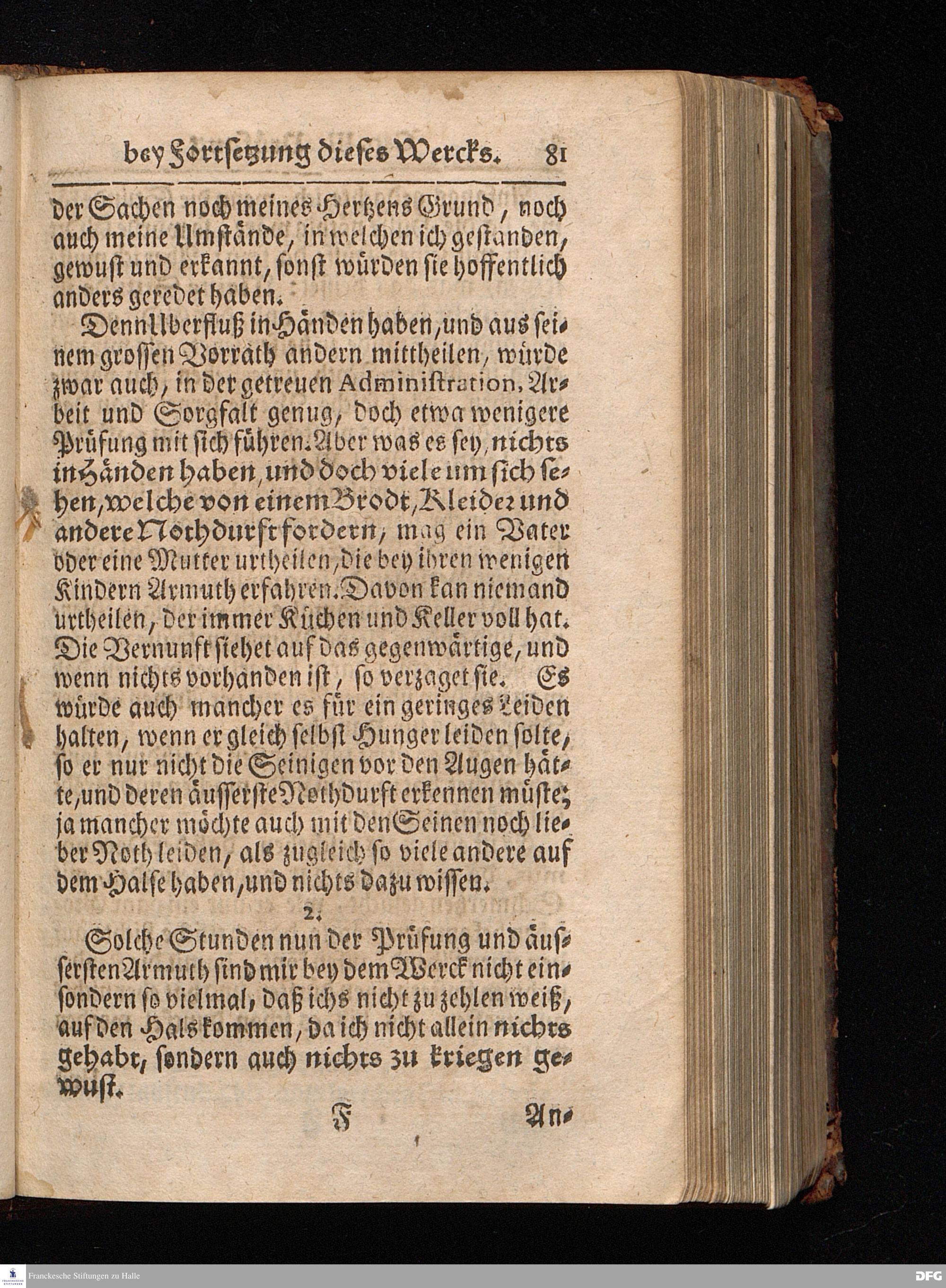 Segens=volle Fußstapfen des noch lebenden und waltenden liebrei=│chen und getreuen GOttes, Zur Beschämung des Unglaubens und Stärckung des Glaubens, entdecket durch eine wahrhafte und umständliche Nachricht von dem Wäysen=Hause und übrigen Anstalten zu Glaucha vor Halle; Welche Im Jahr 1701. zum Druck befördert, ietzo aber zum dritten mal ediret, und bis auf gegenwärtiges Jahr fortgesetzet von August Hermann Francken, S.Theol.Prof.und Past. HALLE, in Verlegung des Wäysen=Hauses, MDCCIX.