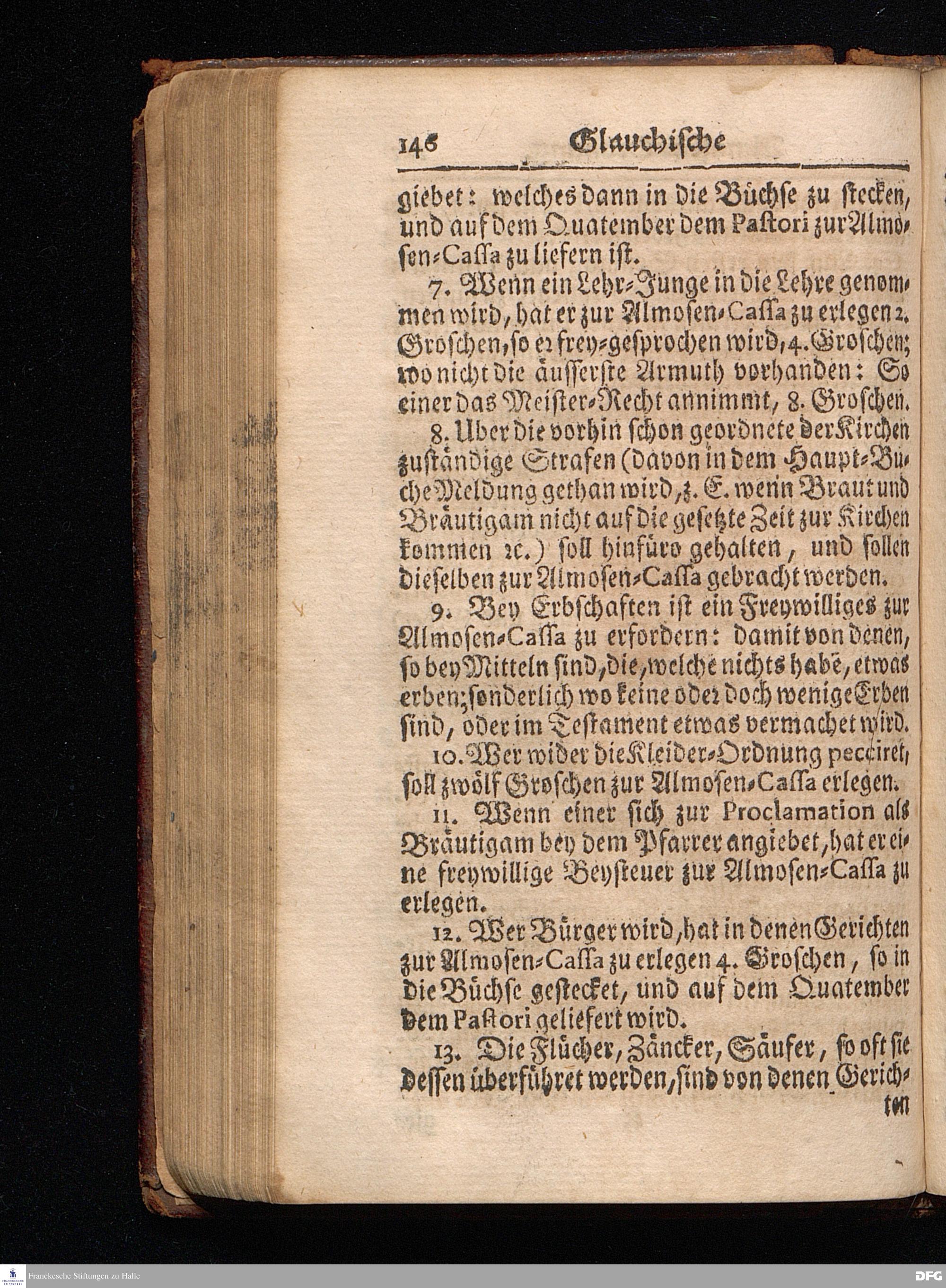 Segens=volle Fußstapfen des noch lebenden und waltenden liebrei=│chen und getreuen GOttes, Zur Beschämung des Unglaubens und Stärckung des Glaubens, entdecket durch eine wahrhafte und umständliche Nachricht von dem Wäysen=Hause und übrigen Anstalten zu Glaucha vor Halle; Welche Im Jahr 1701. zum Druck befördert, ietzo aber zum dritten mal ediret, und bis auf gegenwärtiges Jahr fortgesetzet von August Hermann Francken, S.Theol.Prof.und Past. HALLE, in Verlegung des Wäysen=Hauses, MDCCIX.