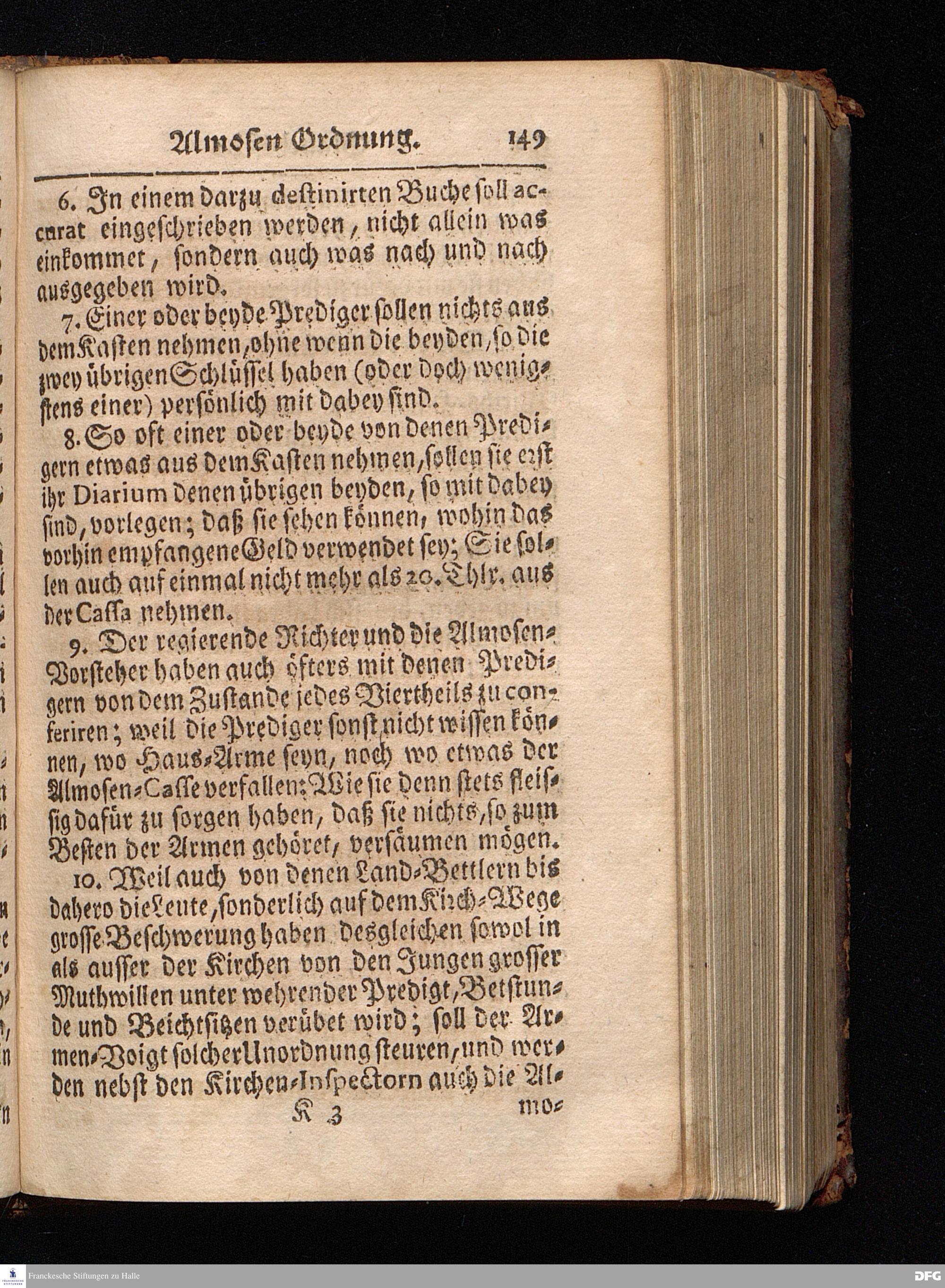 Segens=volle Fußstapfen des noch lebenden und waltenden liebrei=│chen und getreuen GOttes, Zur Beschämung des Unglaubens und Stärckung des Glaubens, entdecket durch eine wahrhafte und umständliche Nachricht von dem Wäysen=Hause und übrigen Anstalten zu Glaucha vor Halle; Welche Im Jahr 1701. zum Druck befördert, ietzo aber zum dritten mal ediret, und bis auf gegenwärtiges Jahr fortgesetzet von August Hermann Francken, S.Theol.Prof.und Past. HALLE, in Verlegung des Wäysen=Hauses, MDCCIX.
