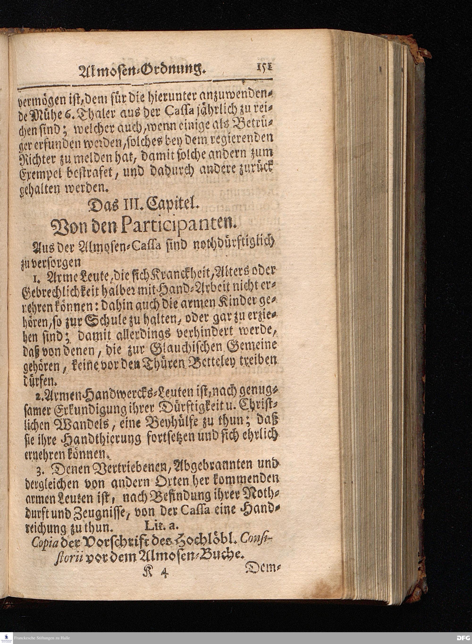 Segens=volle Fußstapfen des noch lebenden und waltenden liebrei=│chen und getreuen GOttes, Zur Beschämung des Unglaubens und Stärckung des Glaubens, entdecket durch eine wahrhafte und umständliche Nachricht von dem Wäysen=Hause und übrigen Anstalten zu Glaucha vor Halle; Welche Im Jahr 1701. zum Druck befördert, ietzo aber zum dritten mal ediret, und bis auf gegenwärtiges Jahr fortgesetzet von August Hermann Francken, S.Theol.Prof.und Past. HALLE, in Verlegung des Wäysen=Hauses, MDCCIX.