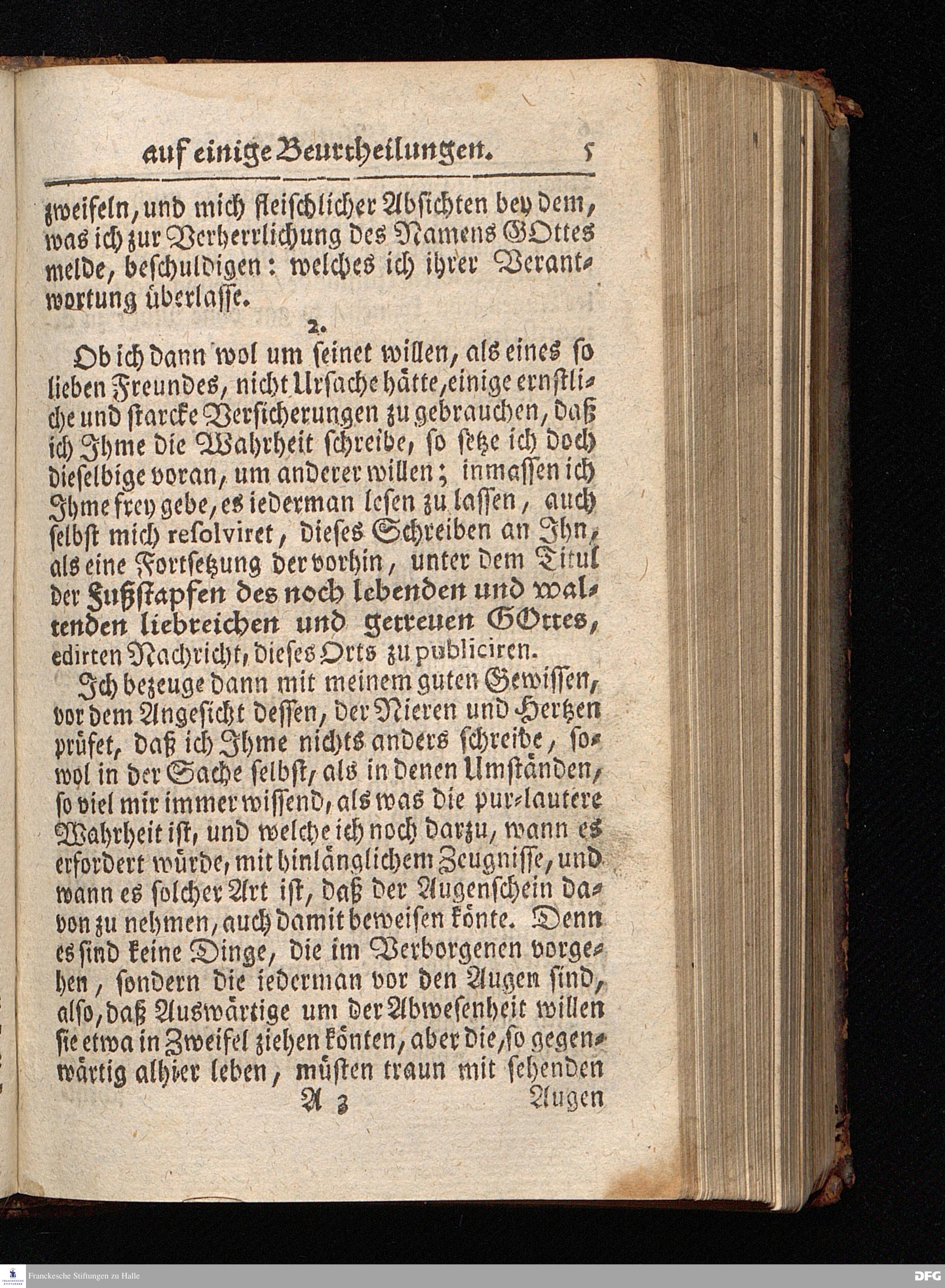 Segens=volle Fußstapfen des noch lebenden und waltenden liebrei=│chen und getreuen GOttes, Zur Beschämung des Unglaubens und Stärckung des Glaubens, entdecket durch eine wahrhafte und umständliche Nachricht von dem Wäysen=Hause und übrigen Anstalten zu Glaucha vor Halle; Welche Im Jahr 1701. zum Druck befördert, ietzo aber zum dritten mal ediret, und bis auf gegenwärtiges Jahr fortgesetzet von August Hermann Francken, S.Theol.Prof.und Past. HALLE, in Verlegung des Wäysen=Hauses, MDCCIX.