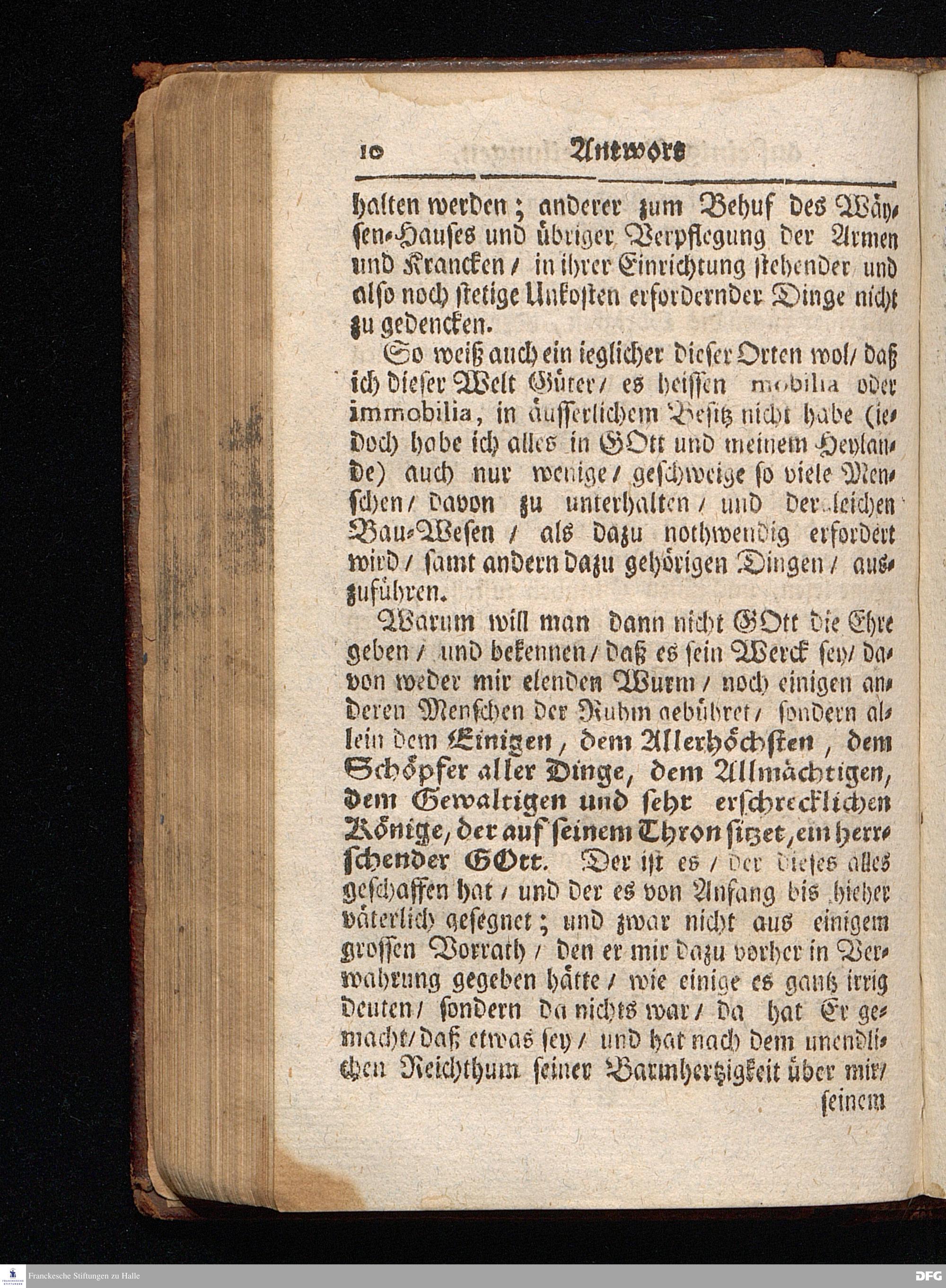 Segens=volle Fußstapfen des noch lebenden und waltenden liebrei=│chen und getreuen GOttes, Zur Beschämung des Unglaubens und Stärckung des Glaubens, entdecket durch eine wahrhafte und umständliche Nachricht von dem Wäysen=Hause und übrigen Anstalten zu Glaucha vor Halle; Welche Im Jahr 1701. zum Druck befördert, ietzo aber zum dritten mal ediret, und bis auf gegenwärtiges Jahr fortgesetzet von August Hermann Francken, S.Theol.Prof.und Past. HALLE, in Verlegung des Wäysen=Hauses, MDCCIX.