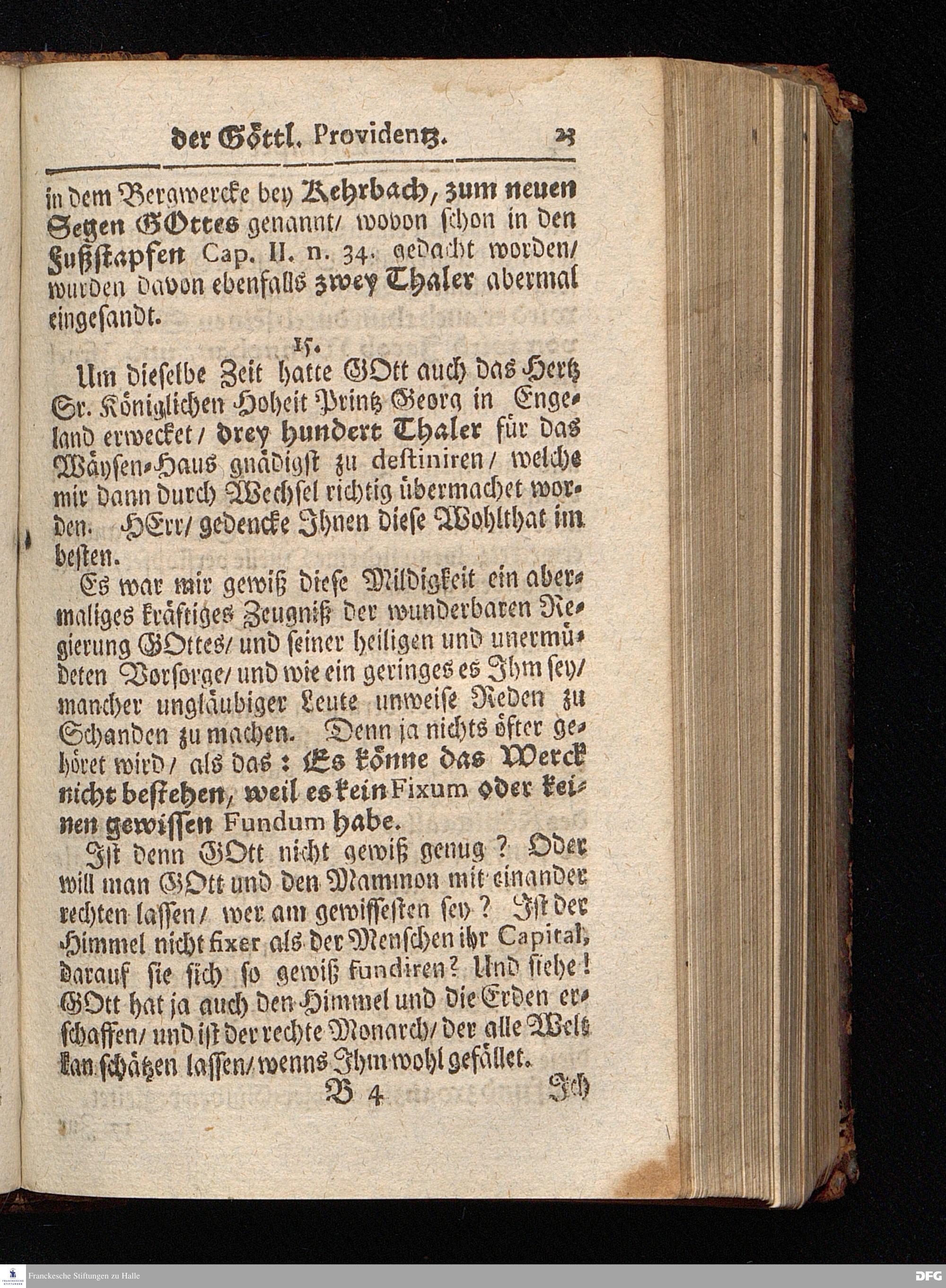 Segens=volle Fußstapfen des noch lebenden und waltenden liebrei=│chen und getreuen GOttes, Zur Beschämung des Unglaubens und Stärckung des Glaubens, entdecket durch eine wahrhafte und umständliche Nachricht von dem Wäysen=Hause und übrigen Anstalten zu Glaucha vor Halle; Welche Im Jahr 1701. zum Druck befördert, ietzo aber zum dritten mal ediret, und bis auf gegenwärtiges Jahr fortgesetzet von August Hermann Francken, S.Theol.Prof.und Past. HALLE, in Verlegung des Wäysen=Hauses, MDCCIX.
