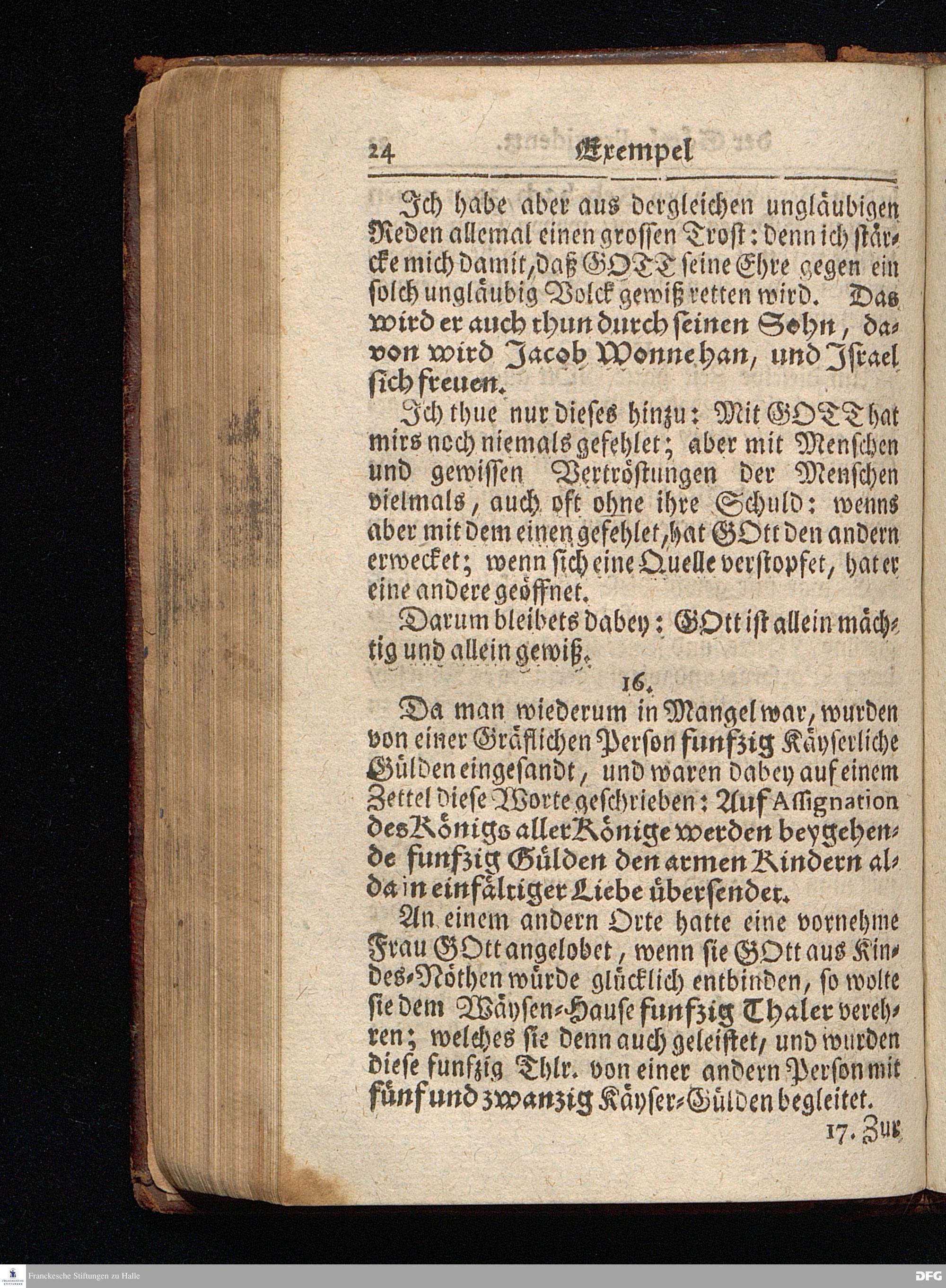 Segens=volle Fußstapfen des noch lebenden und waltenden liebrei=│chen und getreuen GOttes, Zur Beschämung des Unglaubens und Stärckung des Glaubens, entdecket durch eine wahrhafte und umständliche Nachricht von dem Wäysen=Hause und übrigen Anstalten zu Glaucha vor Halle; Welche Im Jahr 1701. zum Druck befördert, ietzo aber zum dritten mal ediret, und bis auf gegenwärtiges Jahr fortgesetzet von August Hermann Francken, S.Theol.Prof.und Past. HALLE, in Verlegung des Wäysen=Hauses, MDCCIX.
