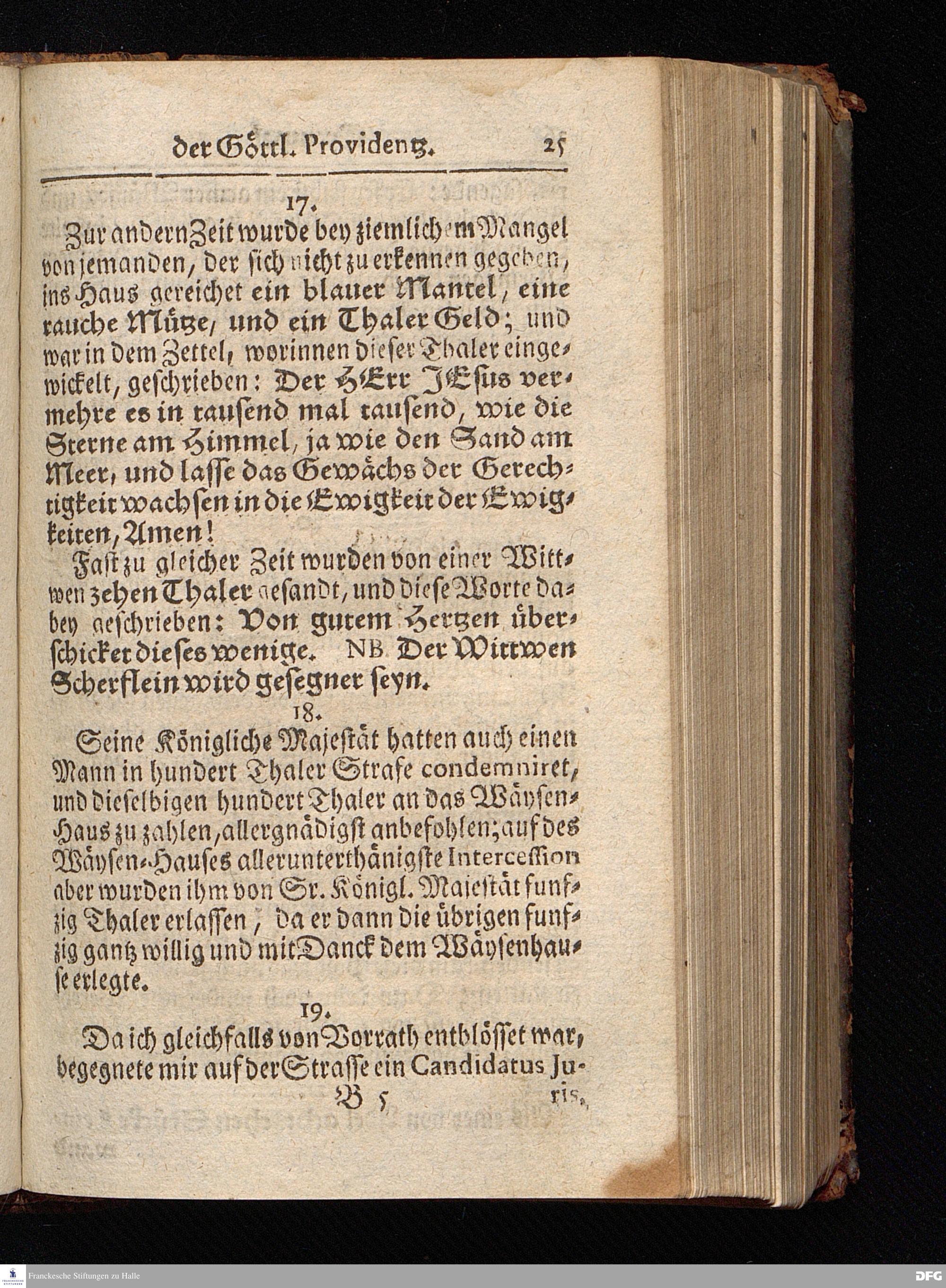 Segens=volle Fußstapfen des noch lebenden und waltenden liebrei=│chen und getreuen GOttes, Zur Beschämung des Unglaubens und Stärckung des Glaubens, entdecket durch eine wahrhafte und umständliche Nachricht von dem Wäysen=Hause und übrigen Anstalten zu Glaucha vor Halle; Welche Im Jahr 1701. zum Druck befördert, ietzo aber zum dritten mal ediret, und bis auf gegenwärtiges Jahr fortgesetzet von August Hermann Francken, S.Theol.Prof.und Past. HALLE, in Verlegung des Wäysen=Hauses, MDCCIX.