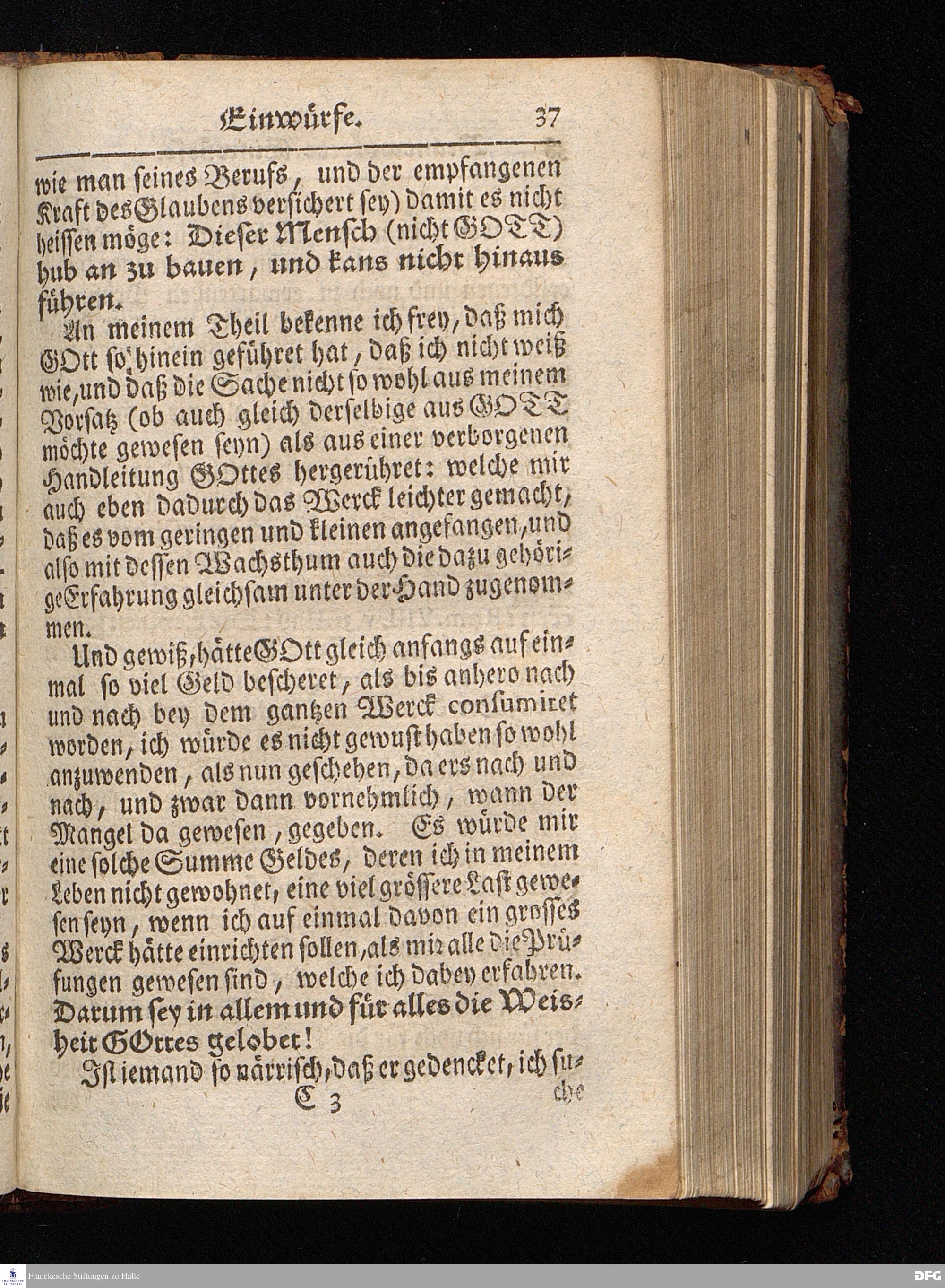 Segens=volle Fußstapfen des noch lebenden und waltenden liebrei=│chen und getreuen GOttes, Zur Beschämung des Unglaubens und Stärckung des Glaubens, entdecket durch eine wahrhafte und umständliche Nachricht von dem Wäysen=Hause und übrigen Anstalten zu Glaucha vor Halle; Welche Im Jahr 1701. zum Druck befördert, ietzo aber zum dritten mal ediret, und bis auf gegenwärtiges Jahr fortgesetzet von August Hermann Francken, S.Theol.Prof.und Past. HALLE, in Verlegung des Wäysen=Hauses, MDCCIX.