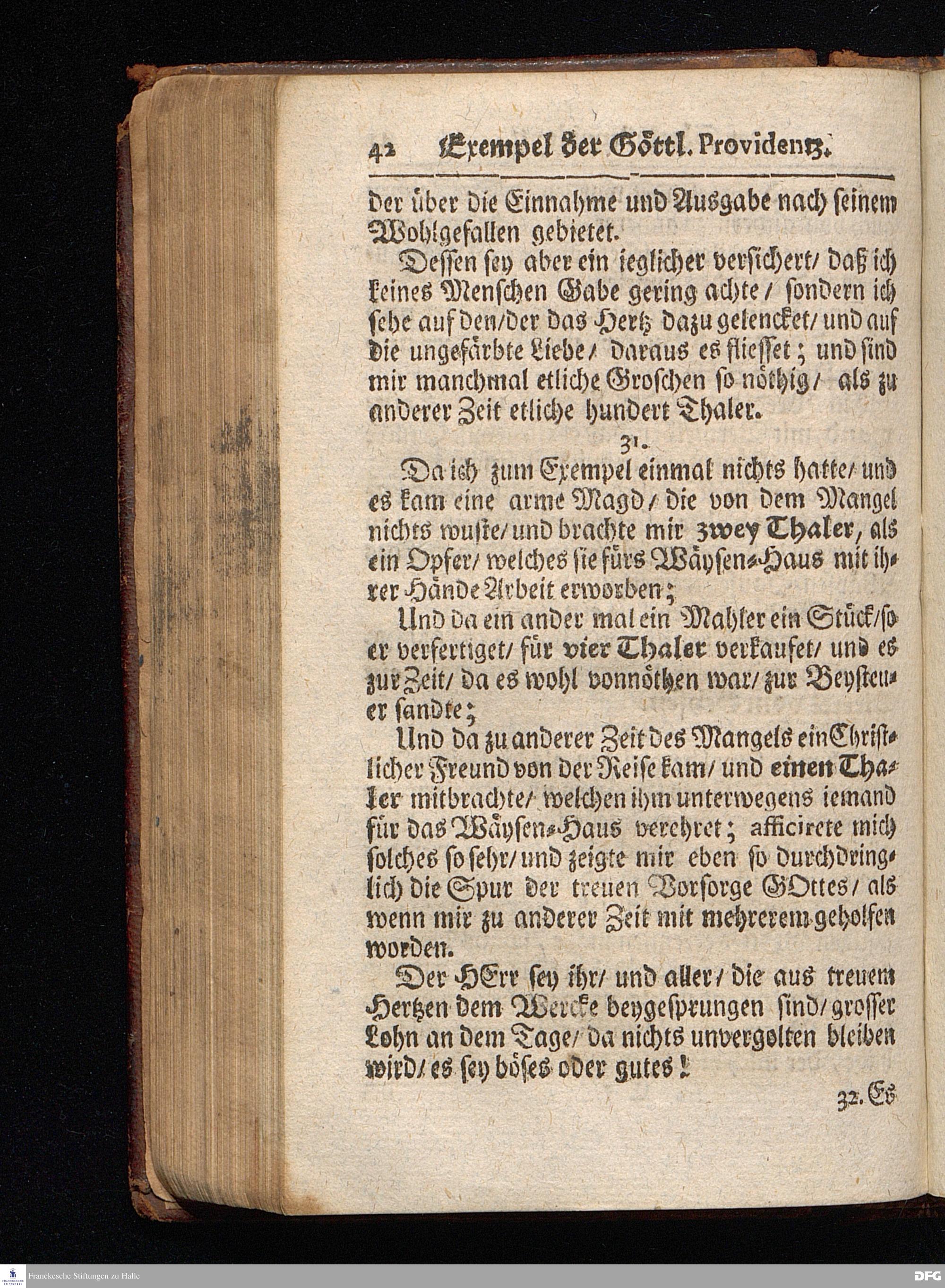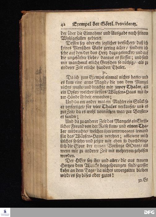 Segens=volle Fußstapfen des noch lebenden und waltenden liebrei=│chen und getreuen GOttes, Zur Beschämung des Unglaubens und Stärckung des Glaubens, entdecket durch eine wahrhafte und umständliche Nachricht von dem Wäysen=Hause und übrigen Anstalten zu Glaucha vor Halle; Welche Im Jahr 1701. zum Druck befördert, ietzo aber zum dritten mal ediret, und bis auf gegenwärtiges Jahr fortgesetzet von August Hermann Francken, S.Theol.Prof.und Past. HALLE, in Verlegung des Wäysen=Hauses, MDCCIX.