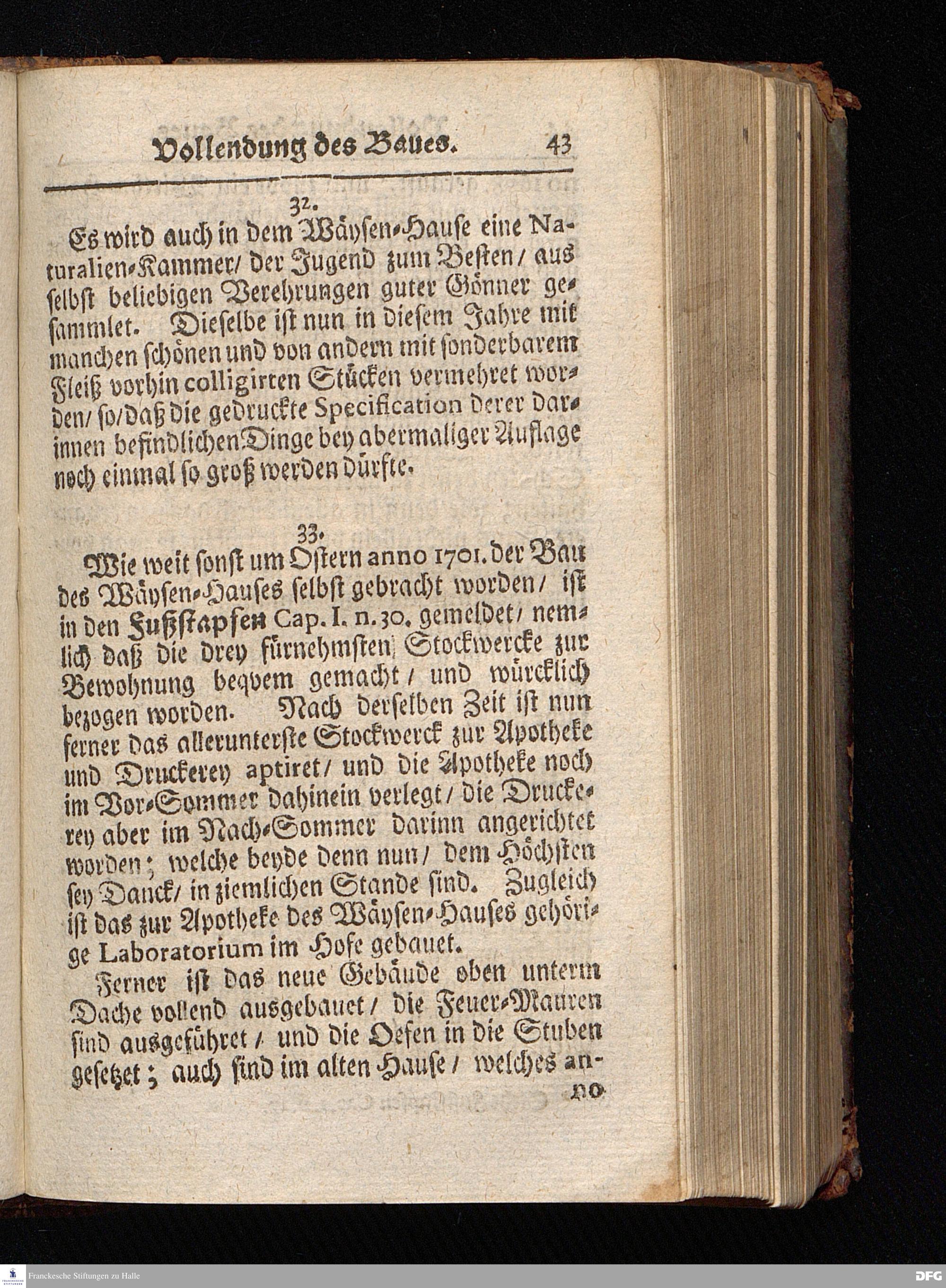 Segens=volle Fußstapfen des noch lebenden und waltenden liebrei=│chen und getreuen GOttes, Zur Beschämung des Unglaubens und Stärckung des Glaubens, entdecket durch eine wahrhafte und umständliche Nachricht von dem Wäysen=Hause und übrigen Anstalten zu Glaucha vor Halle; Welche Im Jahr 1701. zum Druck befördert, ietzo aber zum dritten mal ediret, und bis auf gegenwärtiges Jahr fortgesetzet von August Hermann Francken, S.Theol.Prof.und Past. HALLE, in Verlegung des Wäysen=Hauses, MDCCIX.