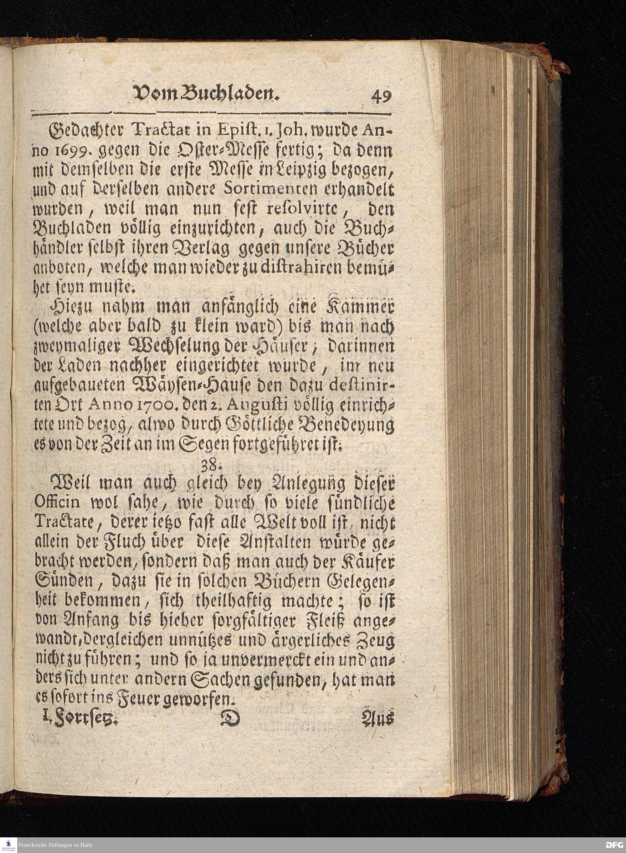 Segens=volle Fußstapfen des noch lebenden und waltenden liebrei=│chen und getreuen GOttes, Zur Beschämung des Unglaubens und Stärckung des Glaubens, entdecket durch eine wahrhafte und umständliche Nachricht von dem Wäysen=Hause und übrigen Anstalten zu Glaucha vor Halle; Welche Im Jahr 1701. zum Druck befördert, ietzo aber zum dritten mal ediret, und bis auf gegenwärtiges Jahr fortgesetzet von August Hermann Francken, S.Theol.Prof.und Past. HALLE, in Verlegung des Wäysen=Hauses, MDCCIX.