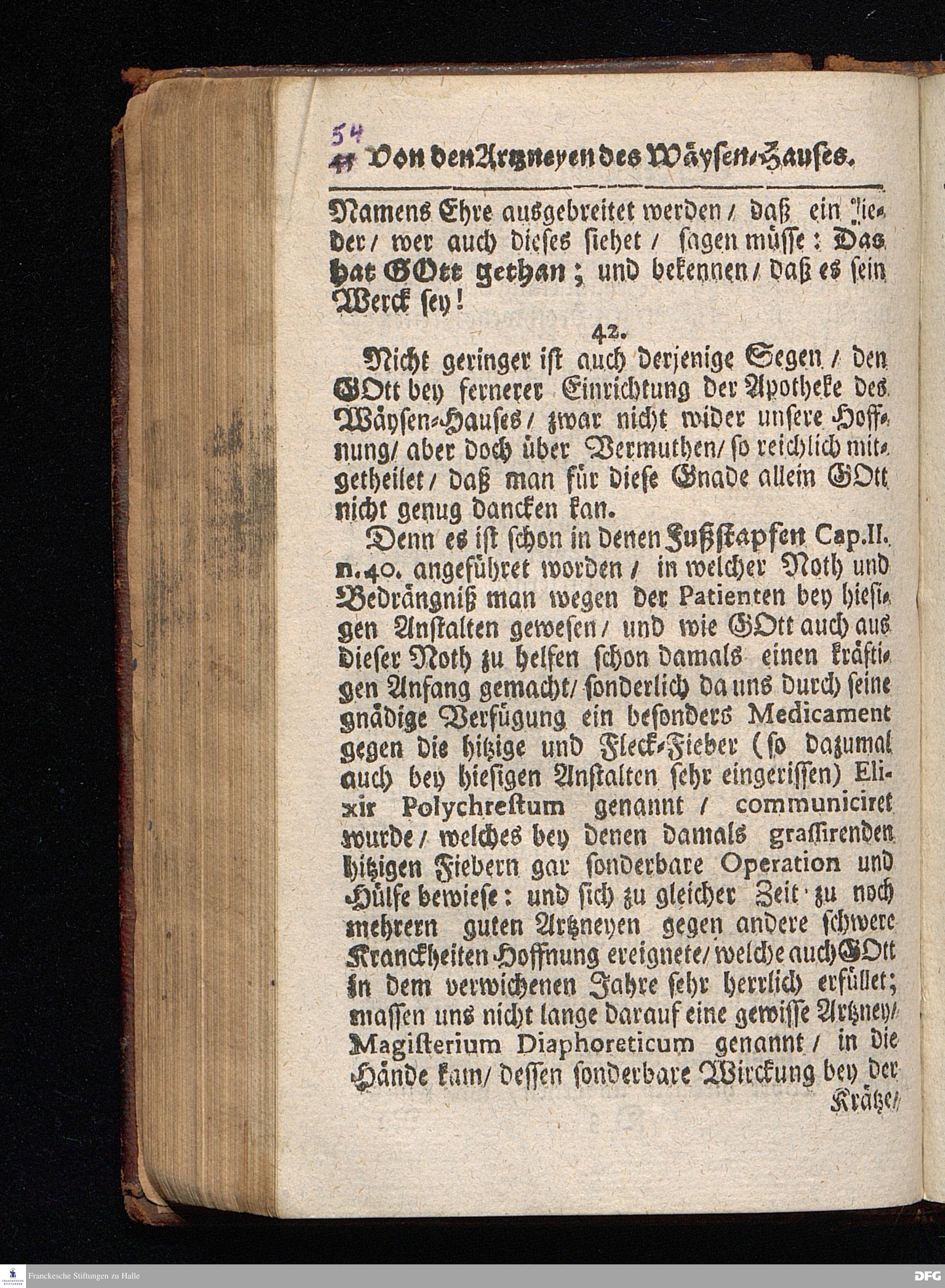 Segens=volle Fußstapfen des noch lebenden und waltenden liebrei=│chen und getreuen GOttes, Zur Beschämung des Unglaubens und Stärckung des Glaubens, entdecket durch eine wahrhafte und umständliche Nachricht von dem Wäysen=Hause und übrigen Anstalten zu Glaucha vor Halle; Welche Im Jahr 1701. zum Druck befördert, ietzo aber zum dritten mal ediret, und bis auf gegenwärtiges Jahr fortgesetzet von August Hermann Francken, S.Theol.Prof.und Past. HALLE, in Verlegung des Wäysen=Hauses, MDCCIX.