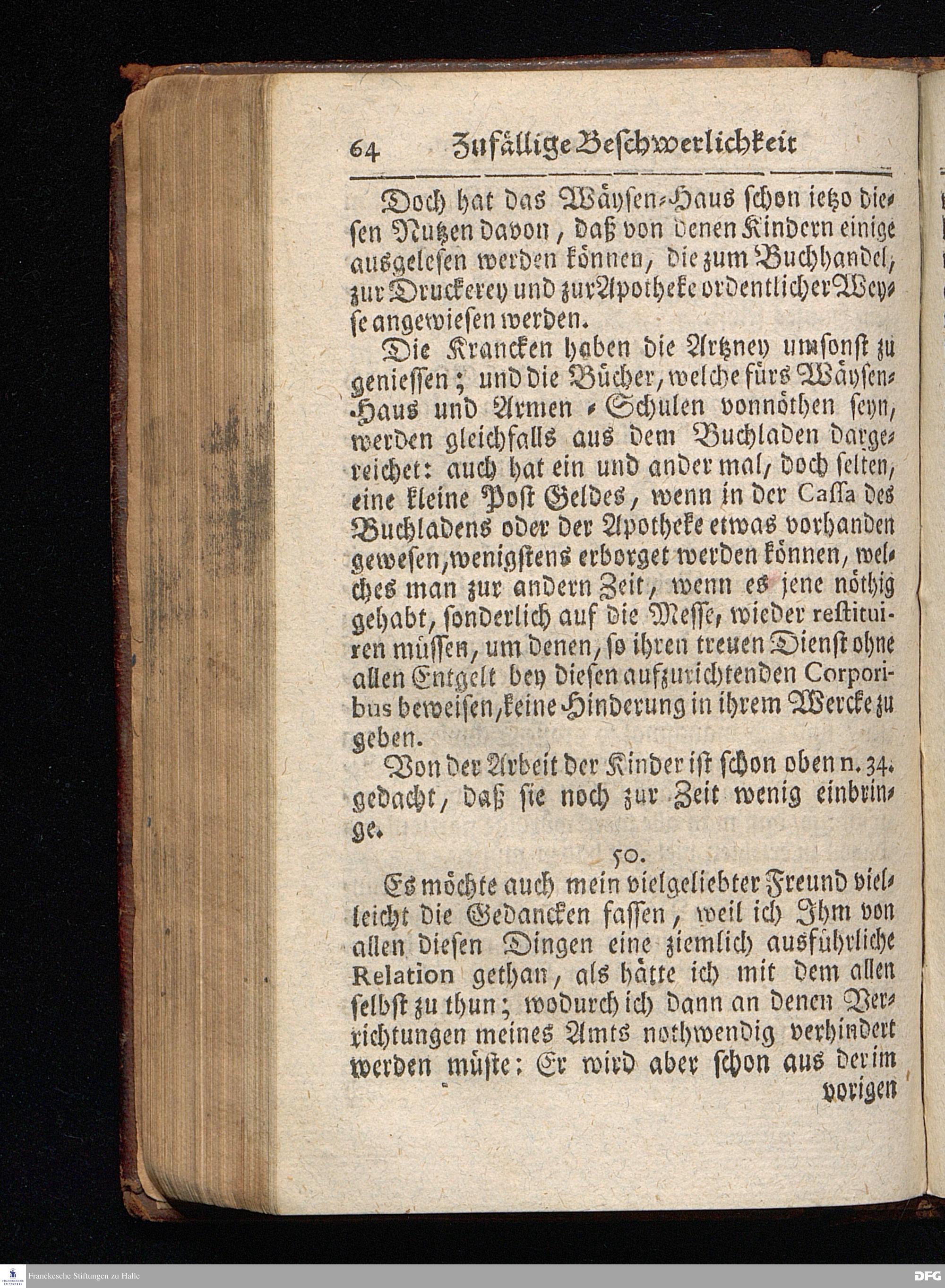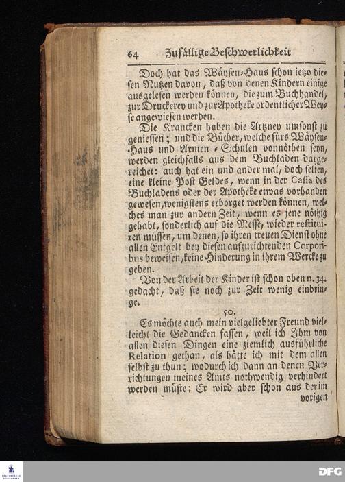 Segens=volle Fußstapfen des noch lebenden und waltenden liebrei=│chen und getreuen GOttes, Zur Beschämung des Unglaubens und Stärckung des Glaubens, entdecket durch eine wahrhafte und umständliche Nachricht von dem Wäysen=Hause und übrigen Anstalten zu Glaucha vor Halle; Welche Im Jahr 1701. zum Druck befördert, ietzo aber zum dritten mal ediret, und bis auf gegenwärtiges Jahr fortgesetzet von August Hermann Francken, S.Theol.Prof.und Past. HALLE, in Verlegung des Wäysen=Hauses, MDCCIX.