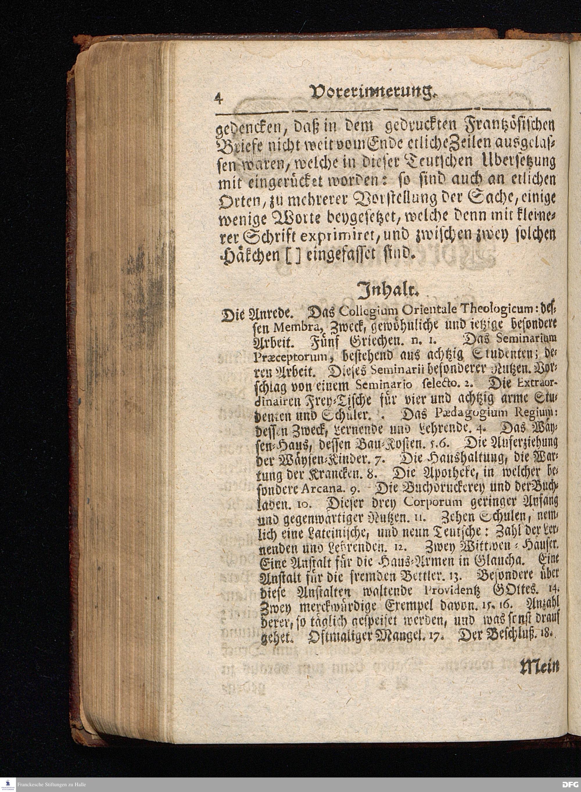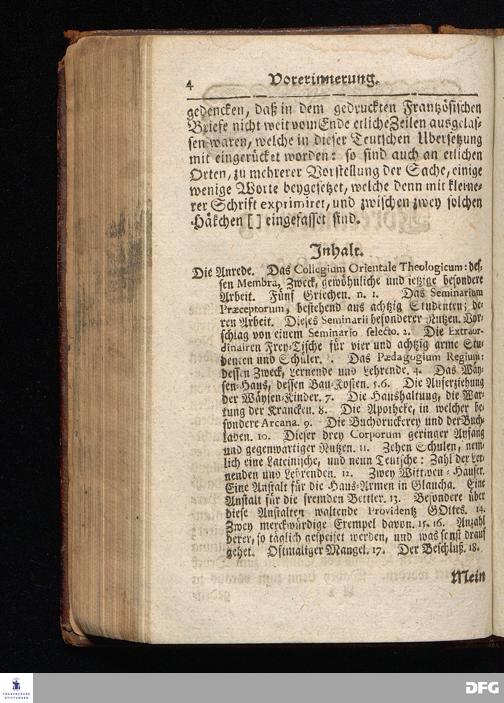 Segens=volle Fußstapfen des noch lebenden und waltenden liebrei=│chen und getreuen GOttes, Zur Beschämung des Unglaubens und Stärckung des Glaubens, entdecket durch eine wahrhafte und umständliche Nachricht von dem Wäysen=Hause und übrigen Anstalten zu Glaucha vor Halle; Welche Im Jahr 1701. zum Druck befördert, ietzo aber zum dritten mal ediret, und bis auf gegenwärtiges Jahr fortgesetzet von August Hermann Francken, S.Theol.Prof.und Past. HALLE, in Verlegung des Wäysen=Hauses, MDCCIX.