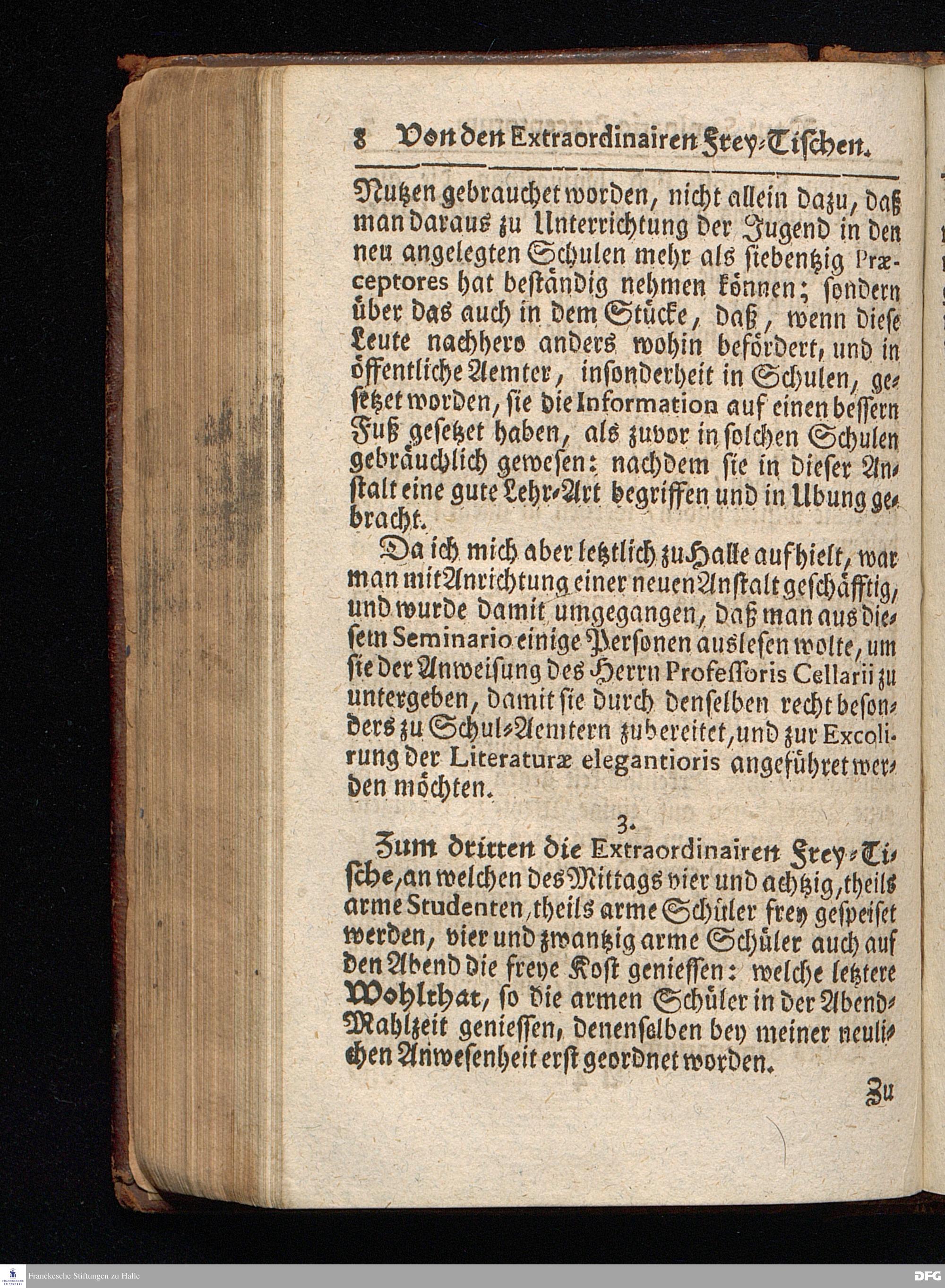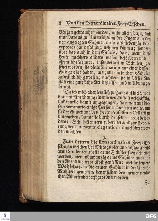 Segens=volle Fußstapfen des noch lebenden und waltenden liebrei=│chen und getreuen GOttes, Zur Beschämung des Unglaubens und Stärckung des Glaubens, entdecket durch eine wahrhafte und umständliche Nachricht von dem Wäysen=Hause und übrigen Anstalten zu Glaucha vor Halle; Welche Im Jahr 1701. zum Druck befördert, ietzo aber zum dritten mal ediret, und bis auf gegenwärtiges Jahr fortgesetzet von August Hermann Francken, S.Theol.Prof.und Past. HALLE, in Verlegung des Wäysen=Hauses, MDCCIX.