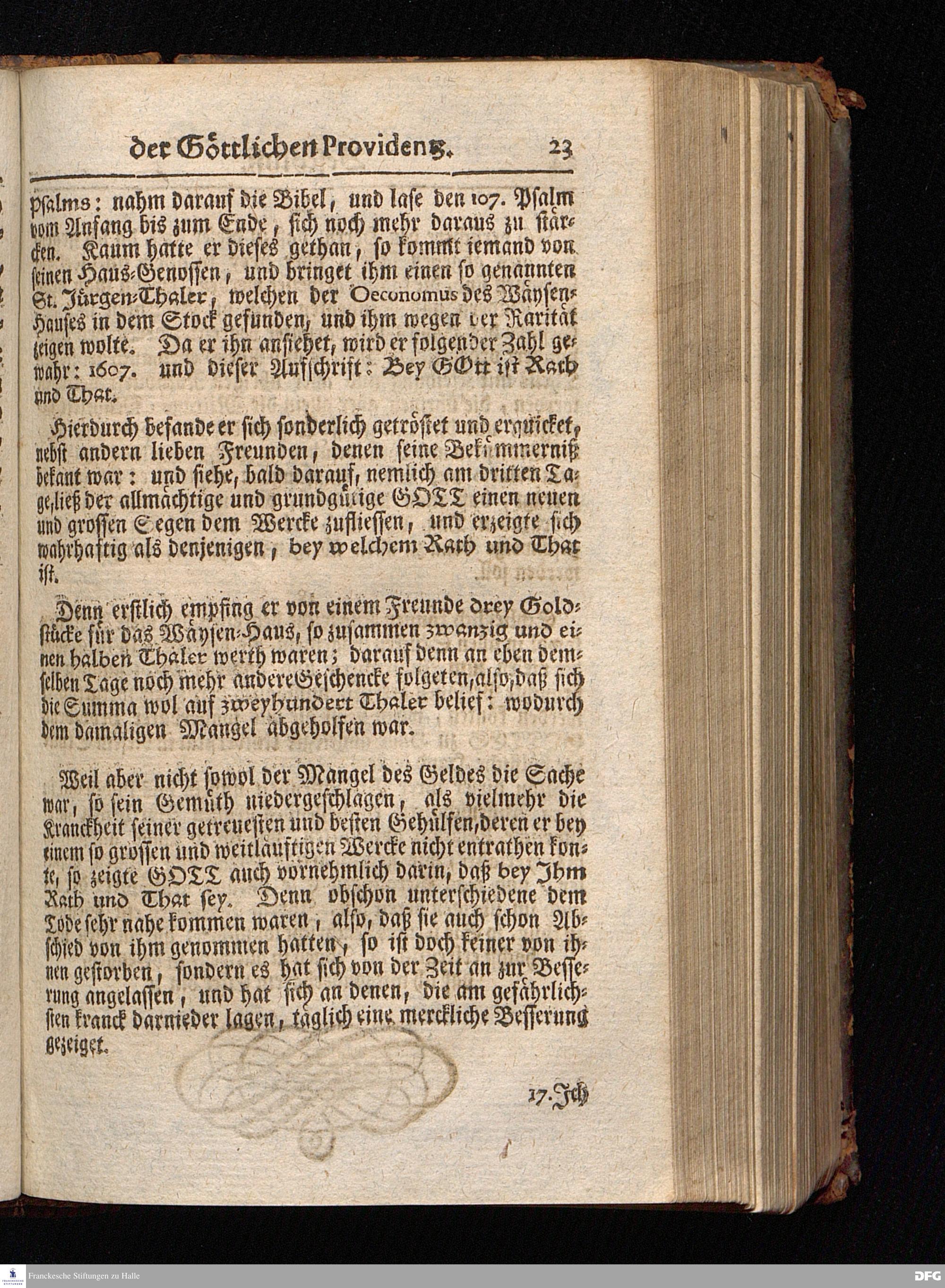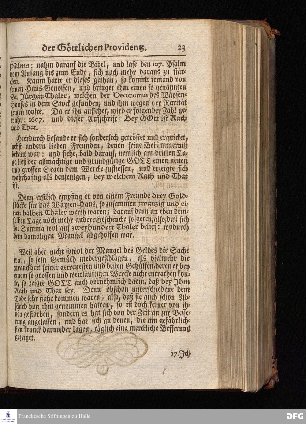 Segens=volle Fußstapfen des noch lebenden und waltenden liebrei=│chen und getreuen GOttes, Zur Beschämung des Unglaubens und Stärckung des Glaubens, entdecket durch eine wahrhafte und umständliche Nachricht von dem Wäysen=Hause und übrigen Anstalten zu Glaucha vor Halle; Welche Im Jahr 1701. zum Druck befördert, ietzo aber zum dritten mal ediret, und bis auf gegenwärtiges Jahr fortgesetzet von August Hermann Francken, S.Theol.Prof.und Past. HALLE, in Verlegung des Wäysen=Hauses, MDCCIX.