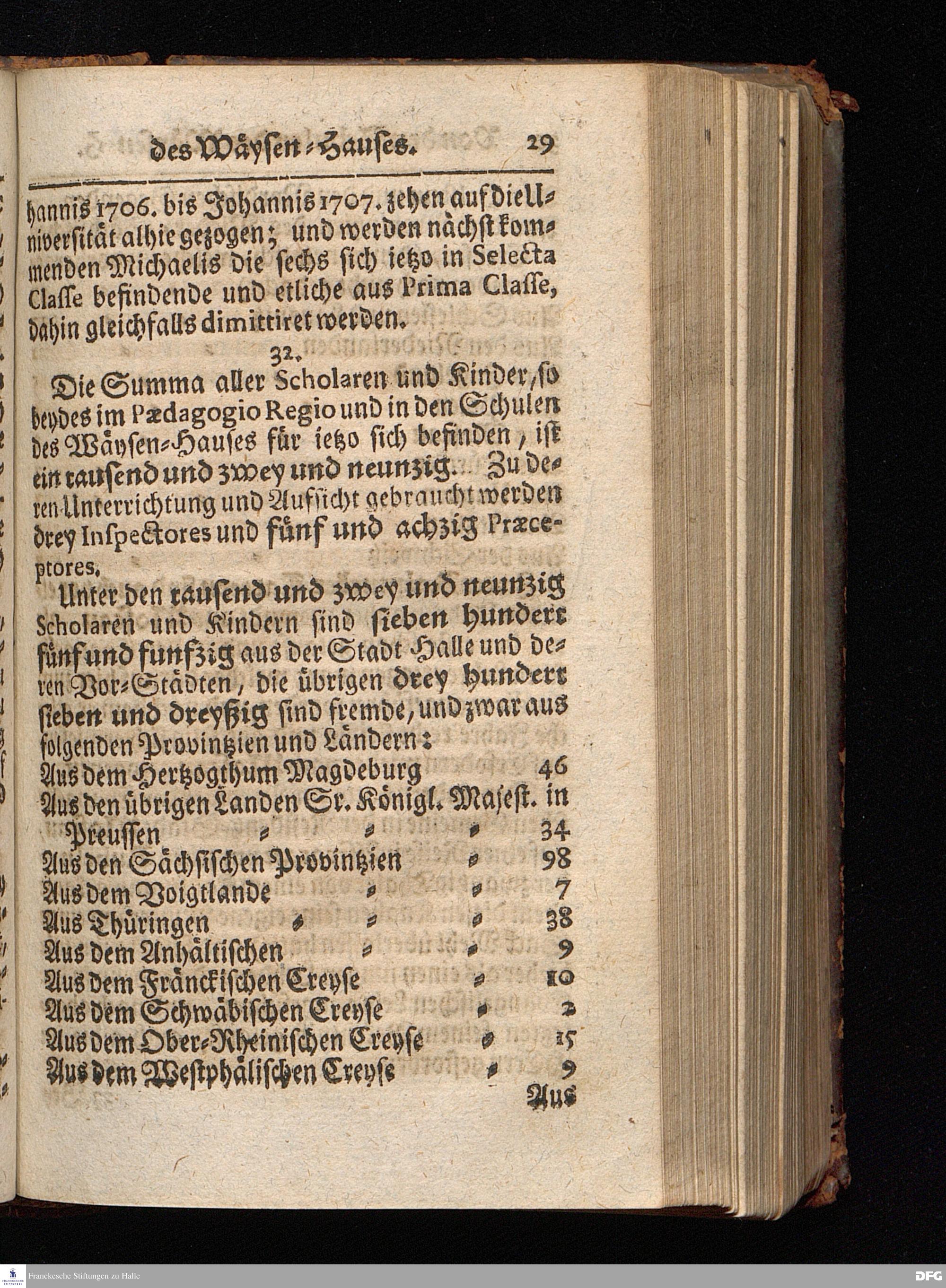 Segens=volle Fußstapfen des noch lebenden und waltenden liebrei=│chen und getreuen GOttes, Zur Beschämung des Unglaubens und Stärckung des Glaubens, entdecket durch eine wahrhafte und umständliche Nachricht von dem Wäysen=Hause und übrigen Anstalten zu Glaucha vor Halle; Welche Im Jahr 1701. zum Druck befördert, ietzo aber zum dritten mal ediret, und bis auf gegenwärtiges Jahr fortgesetzet von August Hermann Francken, S.Theol.Prof.und Past. HALLE, in Verlegung des Wäysen=Hauses, MDCCIX.