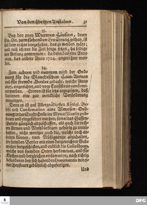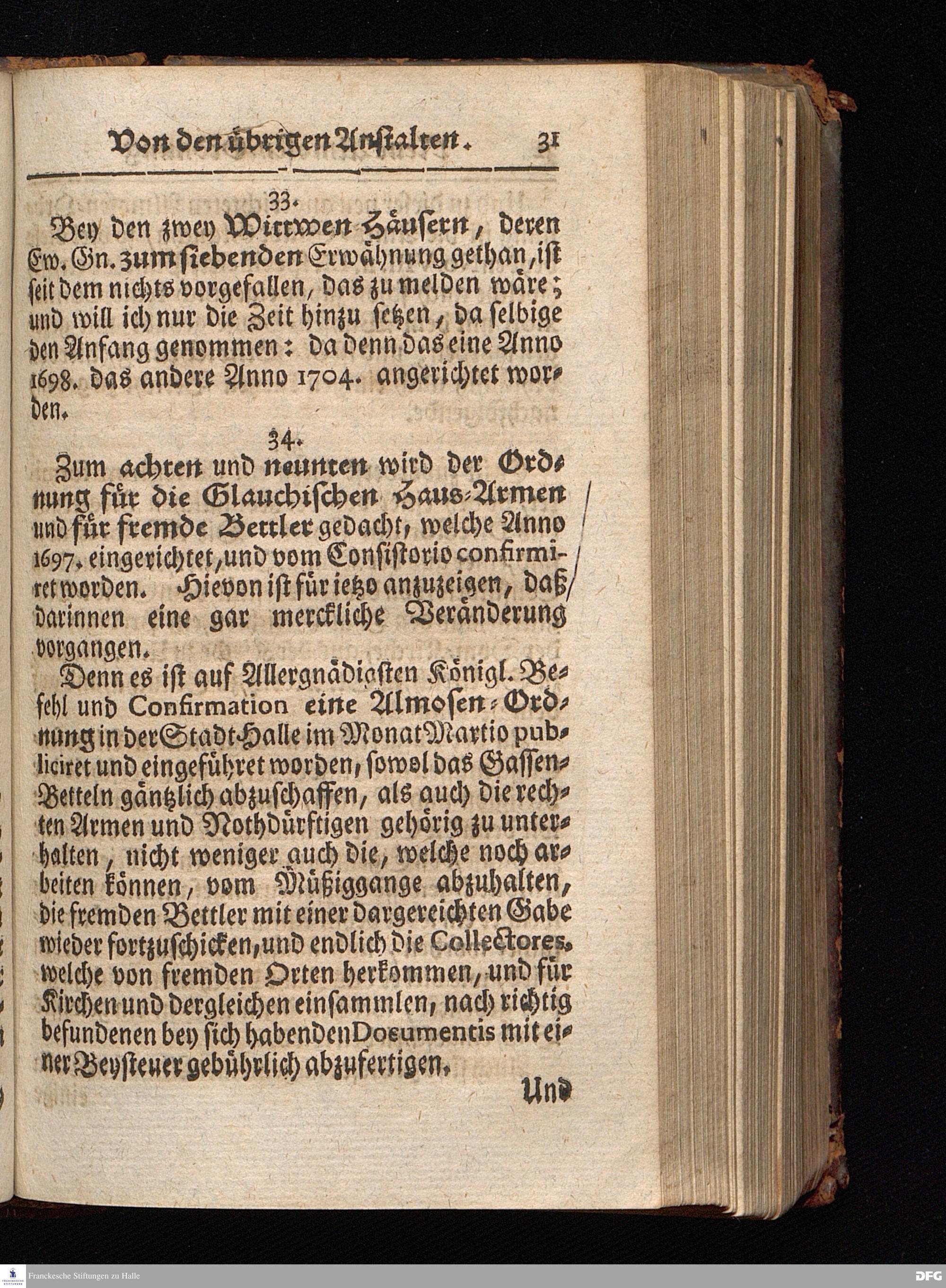 Segens=volle Fußstapfen des noch lebenden und waltenden liebrei=│chen und getreuen GOttes, Zur Beschämung des Unglaubens und Stärckung des Glaubens, entdecket durch eine wahrhafte und umständliche Nachricht von dem Wäysen=Hause und übrigen Anstalten zu Glaucha vor Halle; Welche Im Jahr 1701. zum Druck befördert, ietzo aber zum dritten mal ediret, und bis auf gegenwärtiges Jahr fortgesetzet von August Hermann Francken, S.Theol.Prof.und Past. HALLE, in Verlegung des Wäysen=Hauses, MDCCIX.