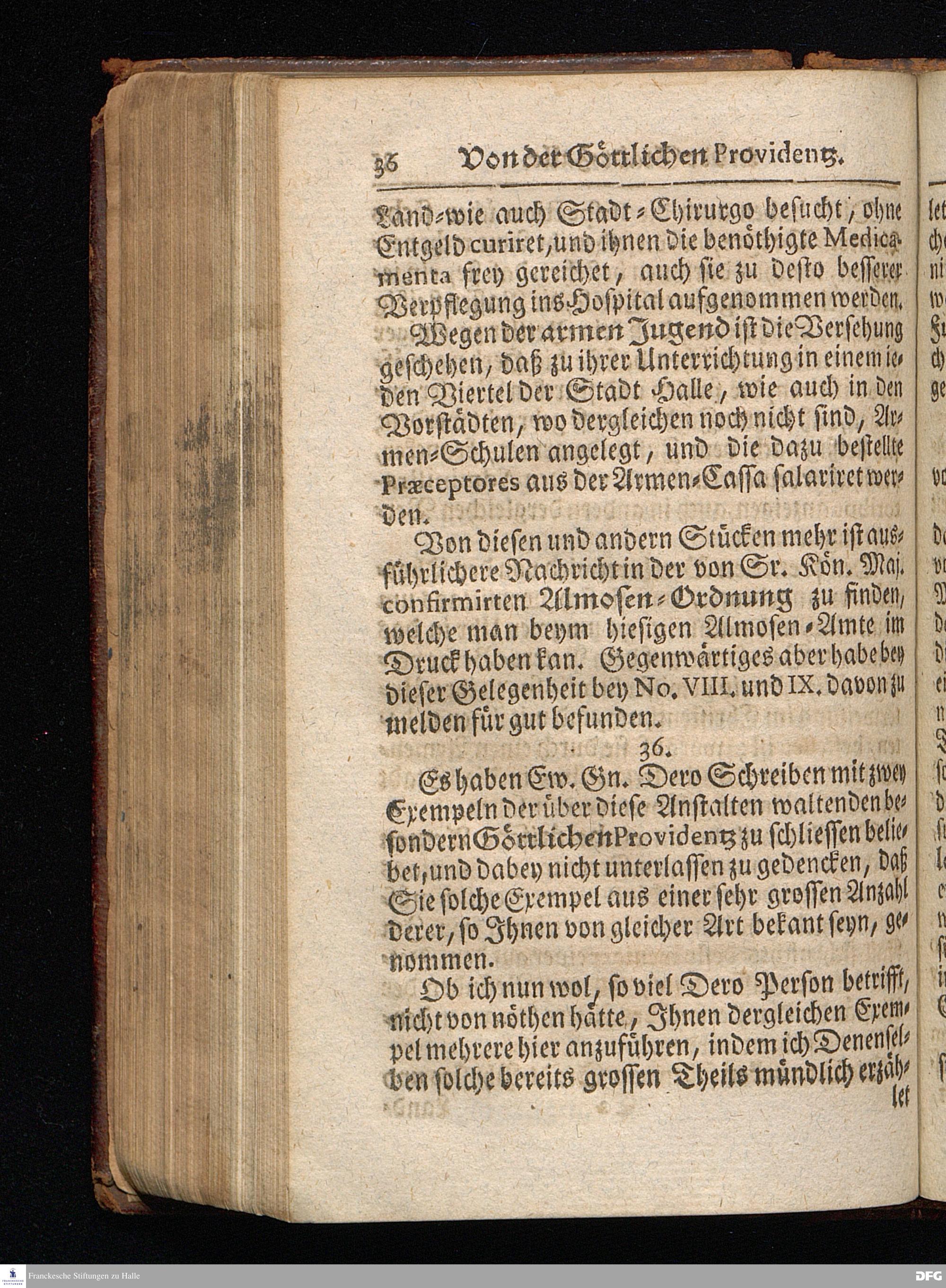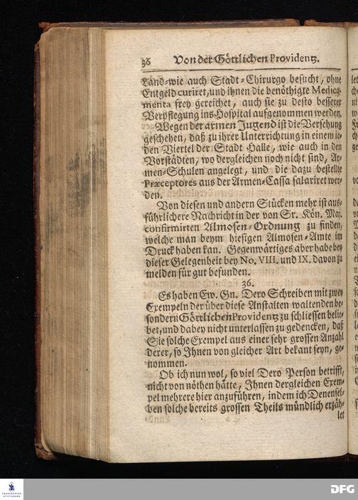 Segens=volle Fußstapfen des noch lebenden und waltenden liebrei=│chen und getreuen GOttes, Zur Beschämung des Unglaubens und Stärckung des Glaubens, entdecket durch eine wahrhafte und umständliche Nachricht von dem Wäysen=Hause und übrigen Anstalten zu Glaucha vor Halle; Welche Im Jahr 1701. zum Druck befördert, ietzo aber zum dritten mal ediret, und bis auf gegenwärtiges Jahr fortgesetzet von August Hermann Francken, S.Theol.Prof.und Past. HALLE, in Verlegung des Wäysen=Hauses, MDCCIX.
