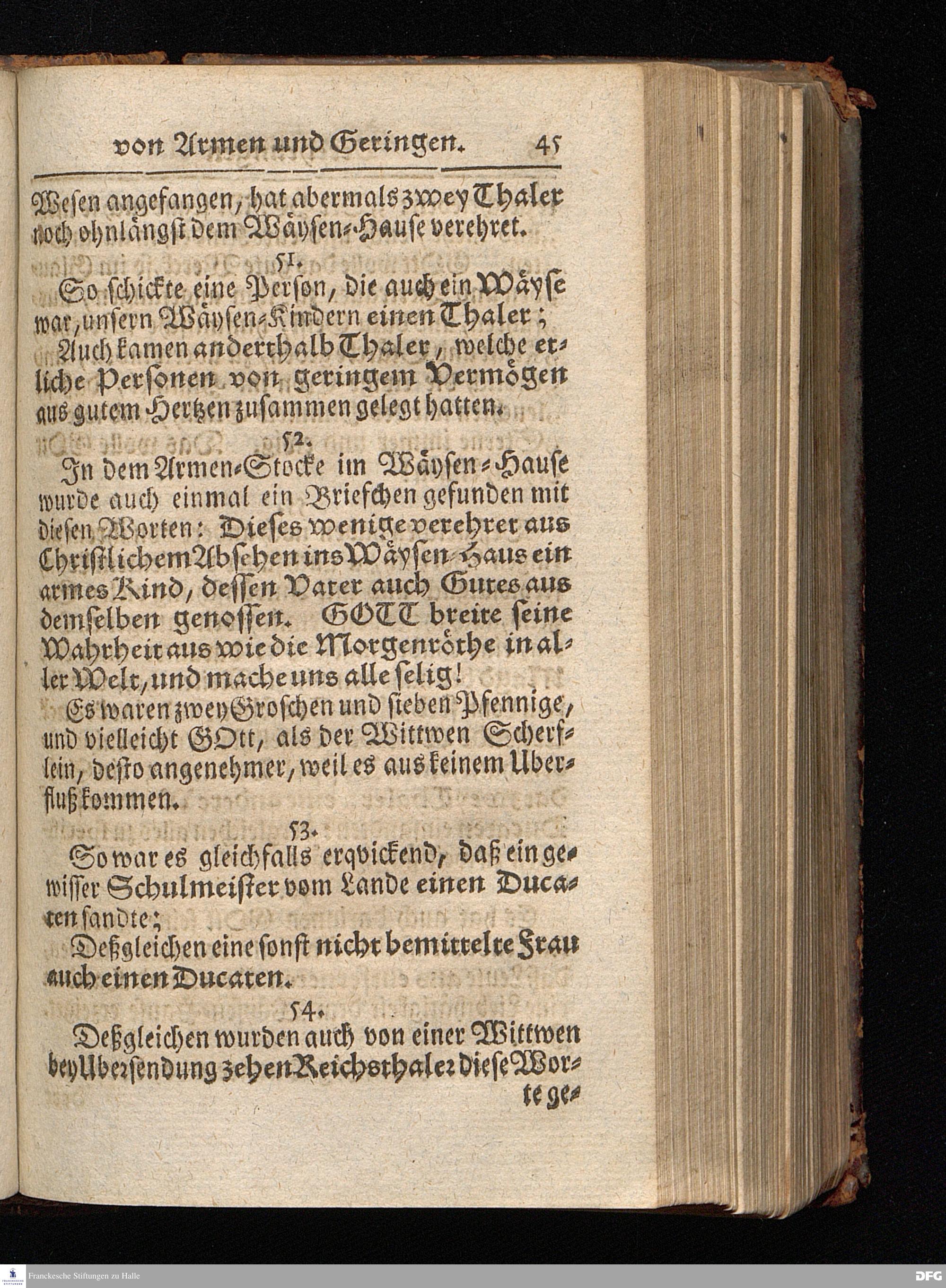 Segens=volle Fußstapfen des noch lebenden und waltenden liebrei=│chen und getreuen GOttes, Zur Beschämung des Unglaubens und Stärckung des Glaubens, entdecket durch eine wahrhafte und umständliche Nachricht von dem Wäysen=Hause und übrigen Anstalten zu Glaucha vor Halle; Welche Im Jahr 1701. zum Druck befördert, ietzo aber zum dritten mal ediret, und bis auf gegenwärtiges Jahr fortgesetzet von August Hermann Francken, S.Theol.Prof.und Past. HALLE, in Verlegung des Wäysen=Hauses, MDCCIX.