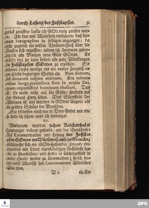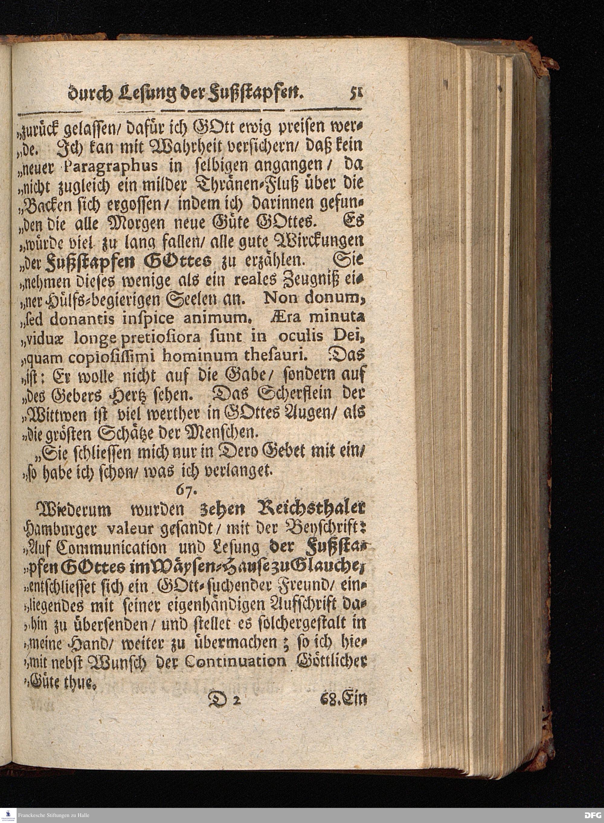 Segens=volle Fußstapfen des noch lebenden und waltenden liebrei=│chen und getreuen GOttes, Zur Beschämung des Unglaubens und Stärckung des Glaubens, entdecket durch eine wahrhafte und umständliche Nachricht von dem Wäysen=Hause und übrigen Anstalten zu Glaucha vor Halle; Welche Im Jahr 1701. zum Druck befördert, ietzo aber zum dritten mal ediret, und bis auf gegenwärtiges Jahr fortgesetzet von August Hermann Francken, S.Theol.Prof.und Past. HALLE, in Verlegung des Wäysen=Hauses, MDCCIX.