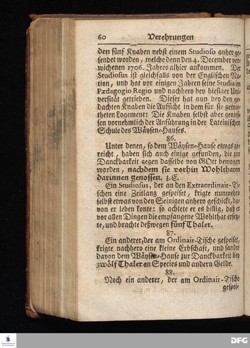 Segens=volle Fußstapfen des noch lebenden und waltenden liebrei=│chen und getreuen GOttes, Zur Beschämung des Unglaubens und Stärckung des Glaubens, entdecket durch eine wahrhafte und umständliche Nachricht von dem Wäysen=Hause und übrigen Anstalten zu Glaucha vor Halle; Welche Im Jahr 1701. zum Druck befördert, ietzo aber zum dritten mal ediret, und bis auf gegenwärtiges Jahr fortgesetzet von August Hermann Francken, S.Theol.Prof.und Past. HALLE, in Verlegung des Wäysen=Hauses, MDCCIX.