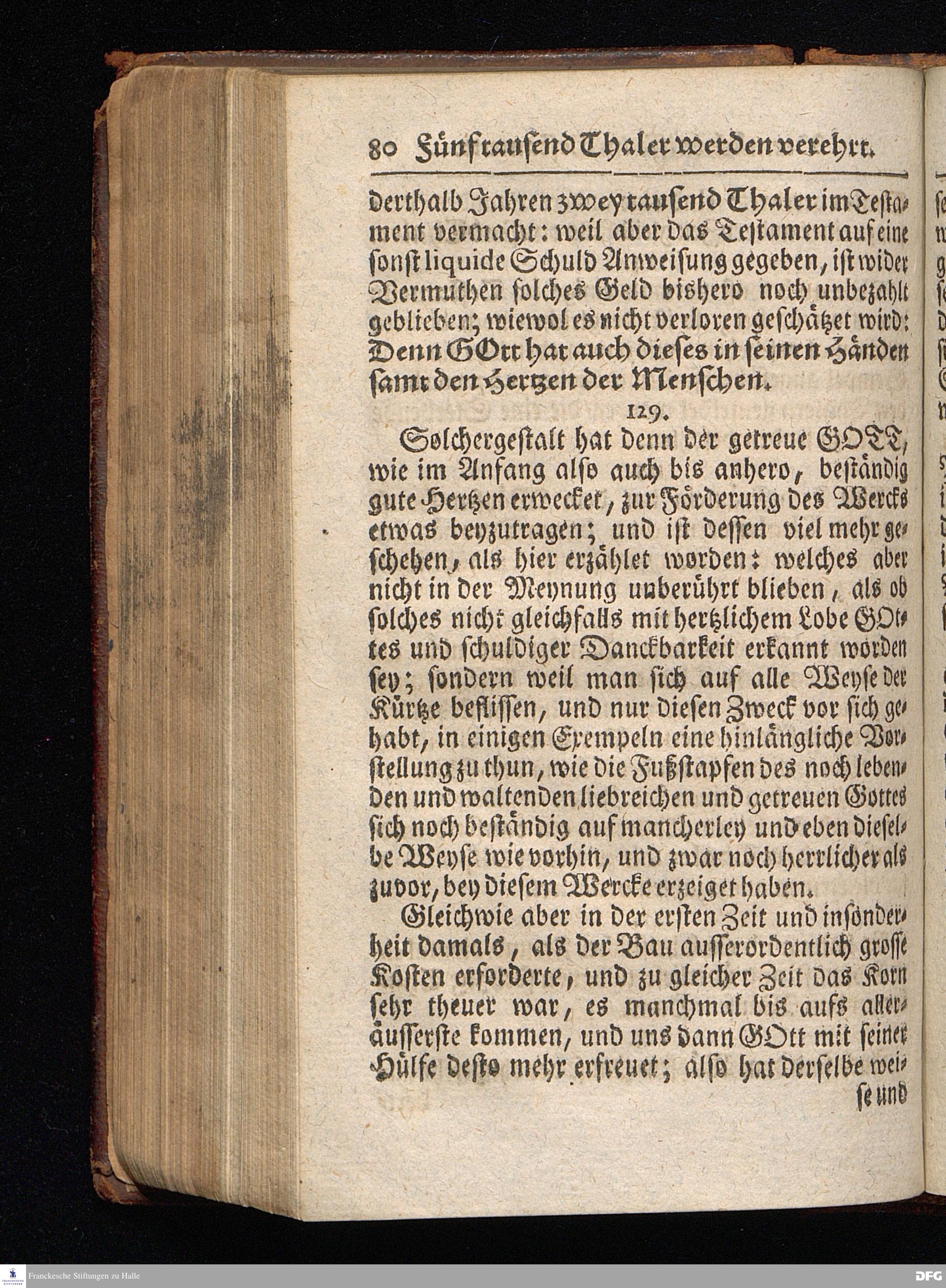 Segens=volle Fußstapfen des noch lebenden und waltenden liebrei=│chen und getreuen GOttes, Zur Beschämung des Unglaubens und Stärckung des Glaubens, entdecket durch eine wahrhafte und umständliche Nachricht von dem Wäysen=Hause und übrigen Anstalten zu Glaucha vor Halle; Welche Im Jahr 1701. zum Druck befördert, ietzo aber zum dritten mal ediret, und bis auf gegenwärtiges Jahr fortgesetzet von August Hermann Francken, S.Theol.Prof.und Past. HALLE, in Verlegung des Wäysen=Hauses, MDCCIX.