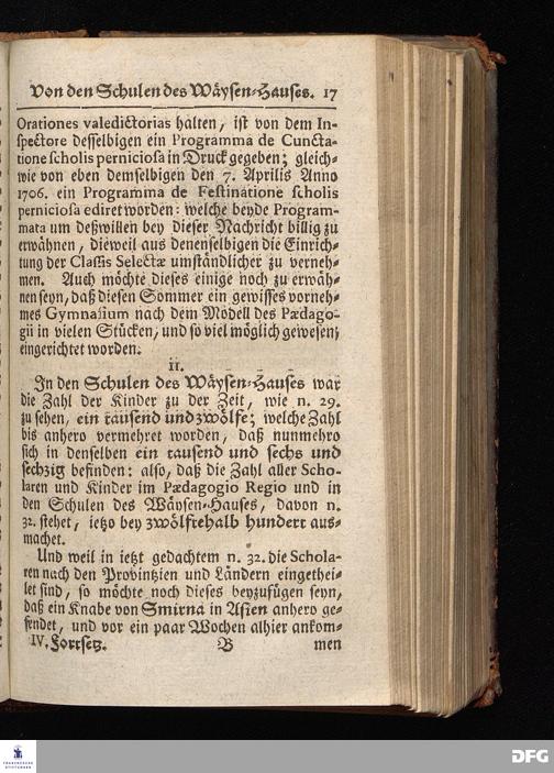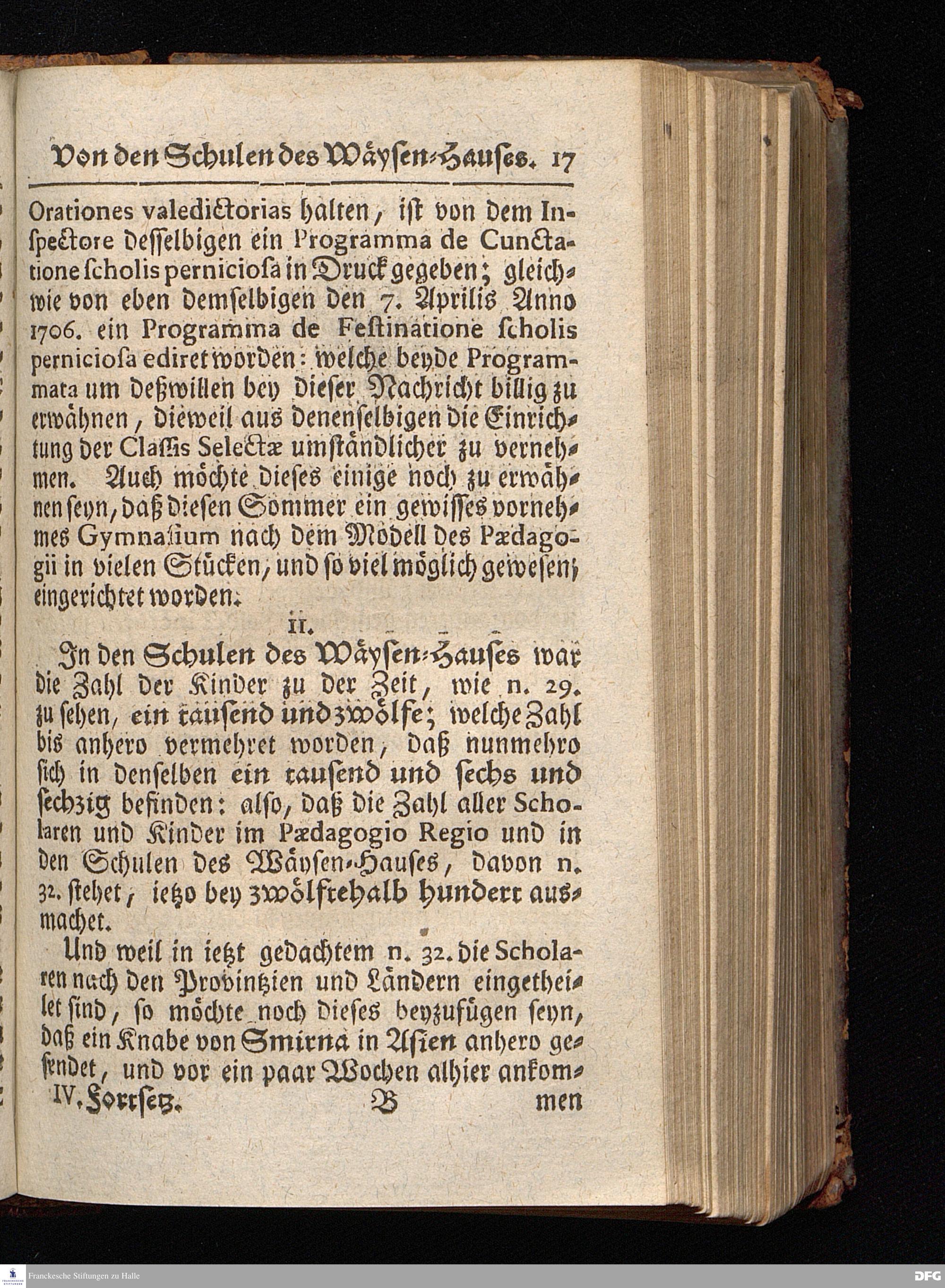 Segens=volle Fußstapfen des noch lebenden und waltenden liebrei=│chen und getreuen GOttes, Zur Beschämung des Unglaubens und Stärckung des Glaubens, entdecket durch eine wahrhafte und umständliche Nachricht von dem Wäysen=Hause und übrigen Anstalten zu Glaucha vor Halle; Welche Im Jahr 1701. zum Druck befördert, ietzo aber zum dritten mal ediret, und bis auf gegenwärtiges Jahr fortgesetzet von August Hermann Francken, S.Theol.Prof.und Past. HALLE, in Verlegung des Wäysen=Hauses, MDCCIX.