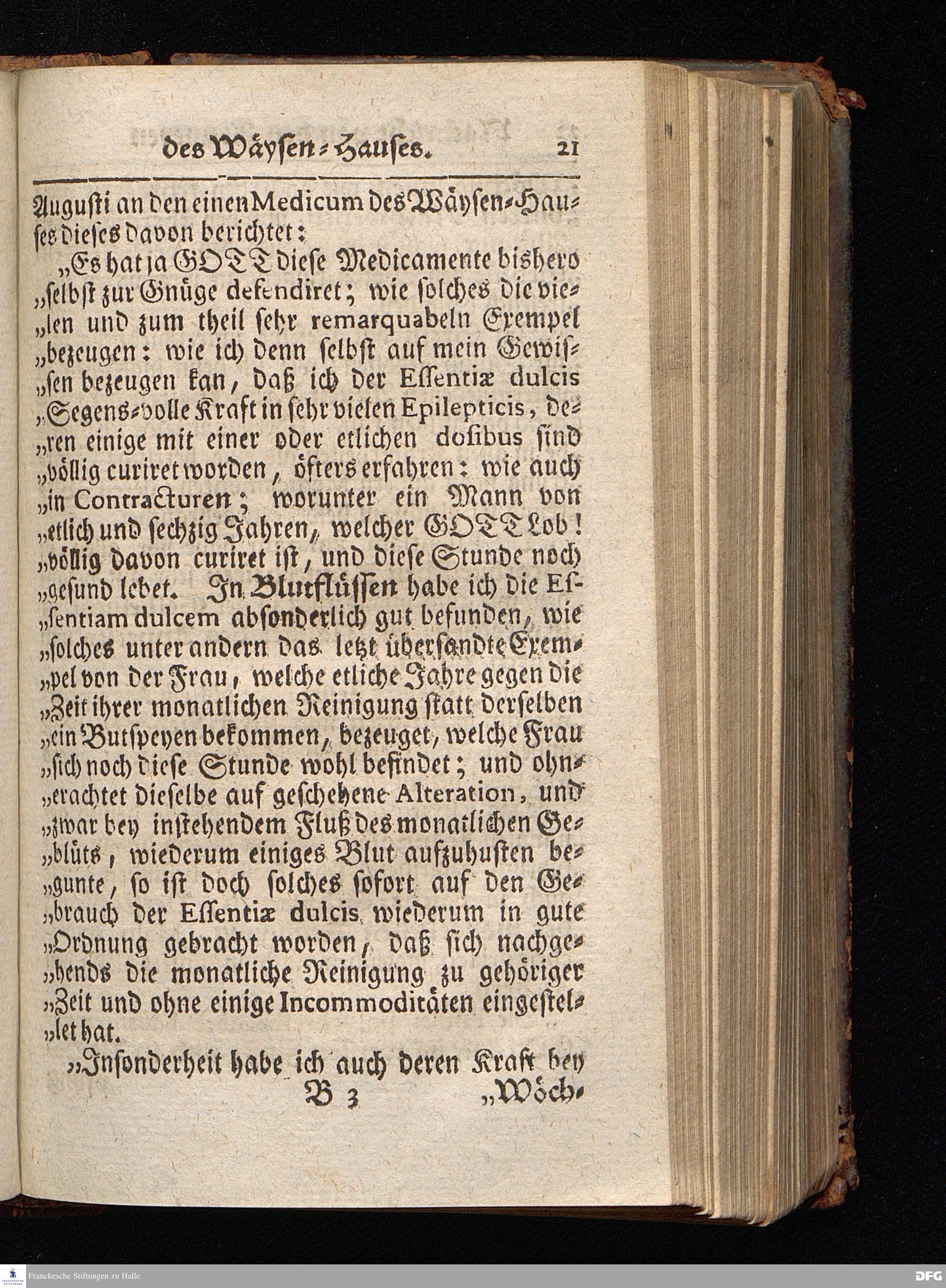 Segens=volle Fußstapfen des noch lebenden und waltenden liebrei=│chen und getreuen GOttes, Zur Beschämung des Unglaubens und Stärckung des Glaubens, entdecket durch eine wahrhafte und umständliche Nachricht von dem Wäysen=Hause und übrigen Anstalten zu Glaucha vor Halle; Welche Im Jahr 1701. zum Druck befördert, ietzo aber zum dritten mal ediret, und bis auf gegenwärtiges Jahr fortgesetzet von August Hermann Francken, S.Theol.Prof.und Past. HALLE, in Verlegung des Wäysen=Hauses, MDCCIX.