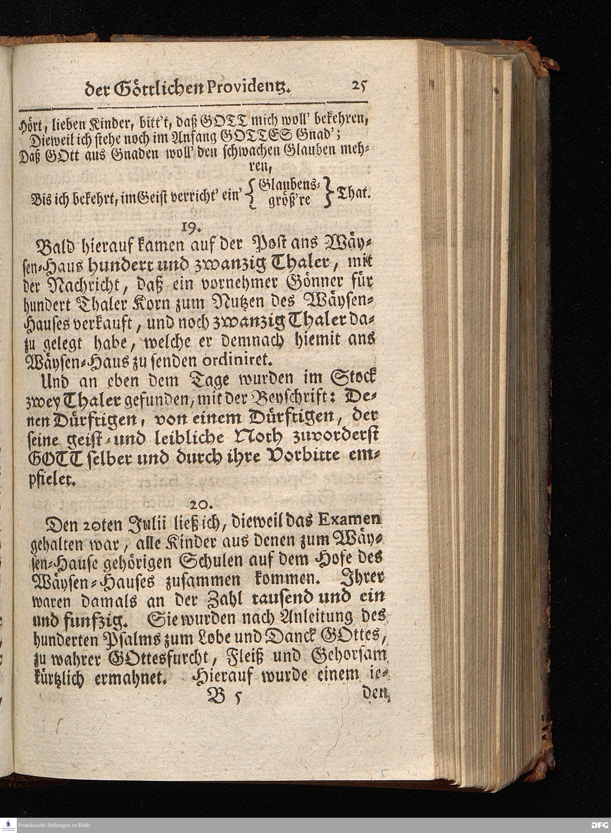 Segens=volle Fußstapfen des noch lebenden und waltenden liebrei=│chen und getreuen GOttes, Zur Beschämung des Unglaubens und Stärckung des Glaubens, entdecket durch eine wahrhafte und umständliche Nachricht von dem Wäysen=Hause und übrigen Anstalten zu Glaucha vor Halle; Welche Im Jahr 1701. zum Druck befördert, ietzo aber zum dritten mal ediret, und bis auf gegenwärtiges Jahr fortgesetzet von August Hermann Francken, S.Theol.Prof.und Past. HALLE, in Verlegung des Wäysen=Hauses, MDCCIX.