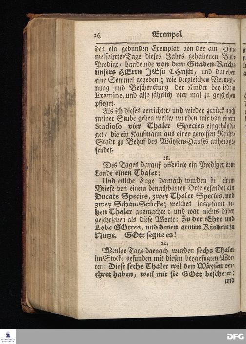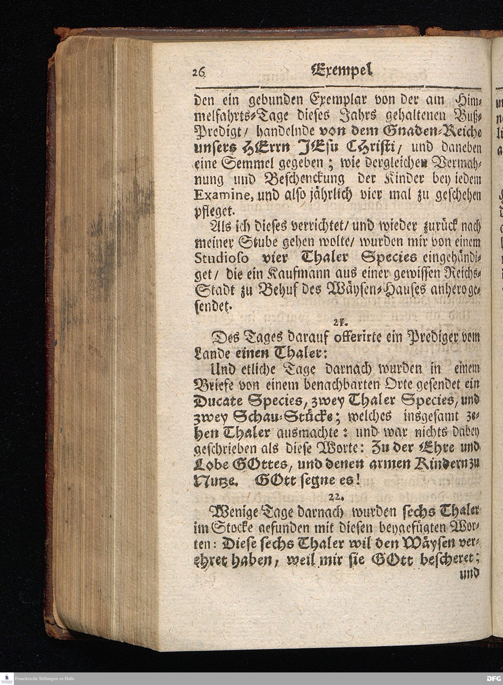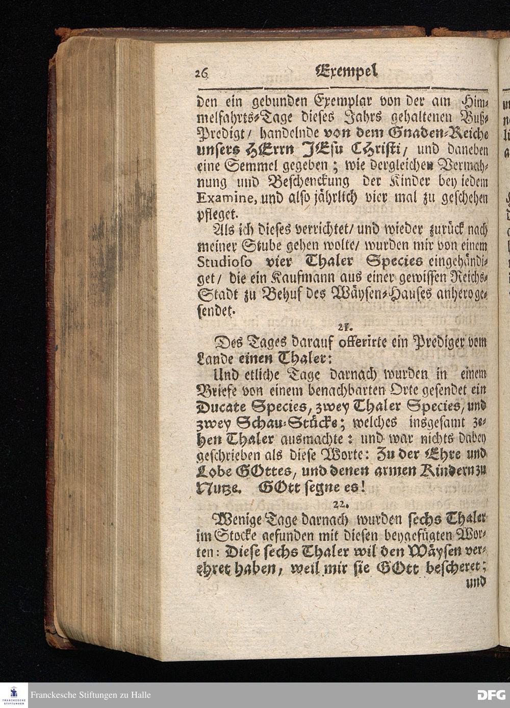 Segens=volle Fußstapfen des noch lebenden und waltenden liebrei=│chen und getreuen GOttes, Zur Beschämung des Unglaubens und Stärckung des Glaubens, entdecket durch eine wahrhafte und umständliche Nachricht von dem Wäysen=Hause und übrigen Anstalten zu Glaucha vor Halle; Welche Im Jahr 1701. zum Druck befördert, ietzo aber zum dritten mal ediret, und bis auf gegenwärtiges Jahr fortgesetzet von August Hermann Francken, S.Theol.Prof.und Past. HALLE, in Verlegung des Wäysen=Hauses, MDCCIX.
