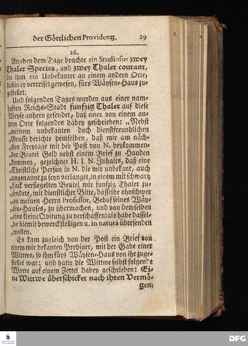 Segens=volle Fußstapfen des noch lebenden und waltenden liebrei=│chen und getreuen GOttes, Zur Beschämung des Unglaubens und Stärckung des Glaubens, entdecket durch eine wahrhafte und umständliche Nachricht von dem Wäysen=Hause und übrigen Anstalten zu Glaucha vor Halle; Welche Im Jahr 1701. zum Druck befördert, ietzo aber zum dritten mal ediret, und bis auf gegenwärtiges Jahr fortgesetzet von August Hermann Francken, S.Theol.Prof.und Past. HALLE, in Verlegung des Wäysen=Hauses, MDCCIX.