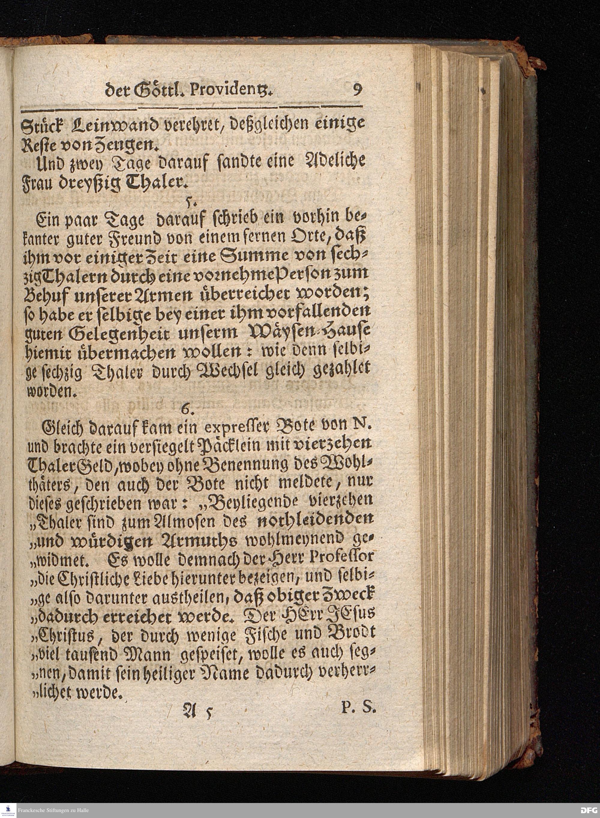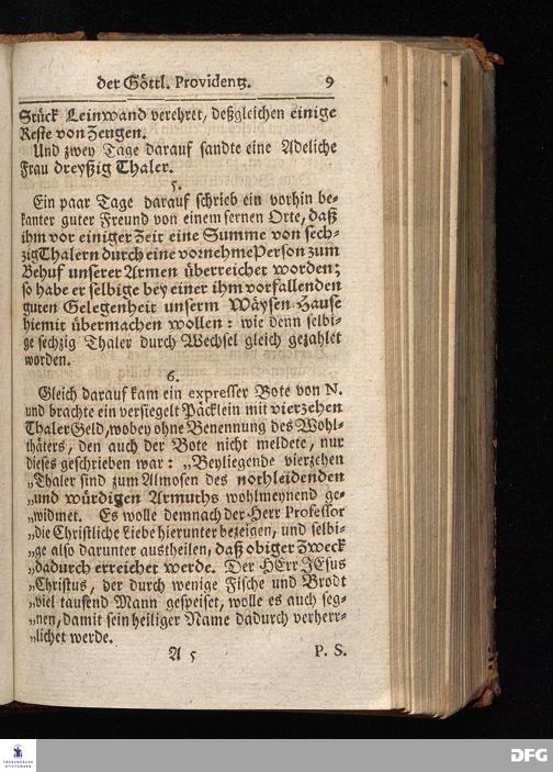 Segens=volle Fußstapfen des noch lebenden und waltenden liebrei=│chen und getreuen GOttes, Zur Beschämung des Unglaubens und Stärckung des Glaubens, entdecket durch eine wahrhafte und umständliche Nachricht von dem Wäysen=Hause und übrigen Anstalten zu Glaucha vor Halle; Welche Im Jahr 1701. zum Druck befördert, ietzo aber zum dritten mal ediret, und bis auf gegenwärtiges Jahr fortgesetzet von August Hermann Francken, S.Theol.Prof.und Past. HALLE, in Verlegung des Wäysen=Hauses, MDCCIX.
