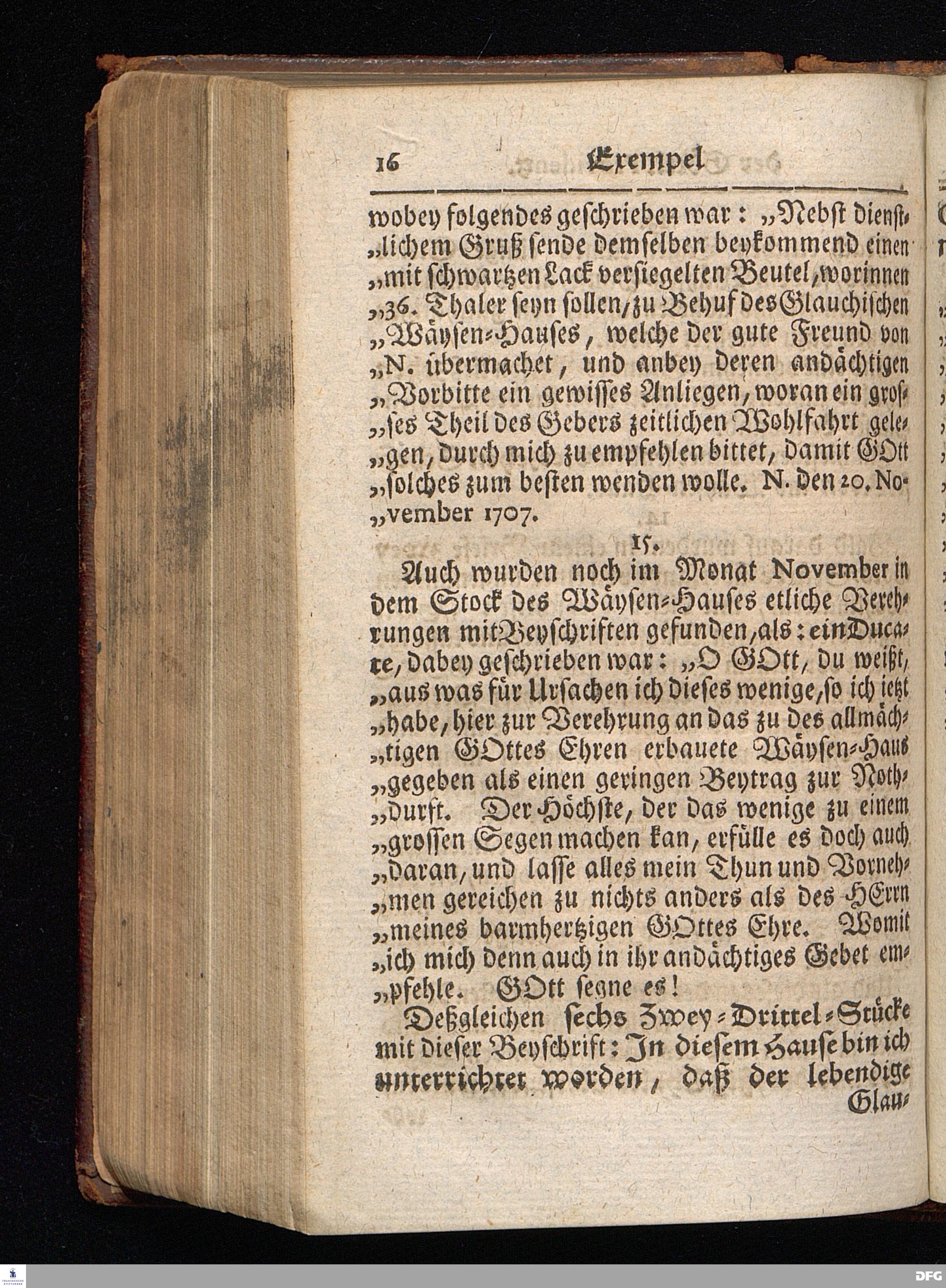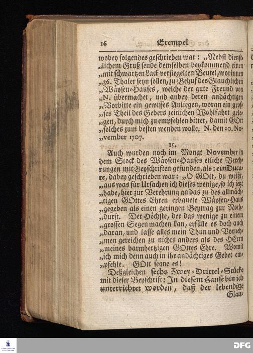 Segens=volle Fußstapfen des noch lebenden und waltenden liebrei=│chen und getreuen GOttes, Zur Beschämung des Unglaubens und Stärckung des Glaubens, entdecket durch eine wahrhafte und umständliche Nachricht von dem Wäysen=Hause und übrigen Anstalten zu Glaucha vor Halle; Welche Im Jahr 1701. zum Druck befördert, ietzo aber zum dritten mal ediret, und bis auf gegenwärtiges Jahr fortgesetzet von August Hermann Francken, S.Theol.Prof.und Past. HALLE, in Verlegung des Wäysen=Hauses, MDCCIX.