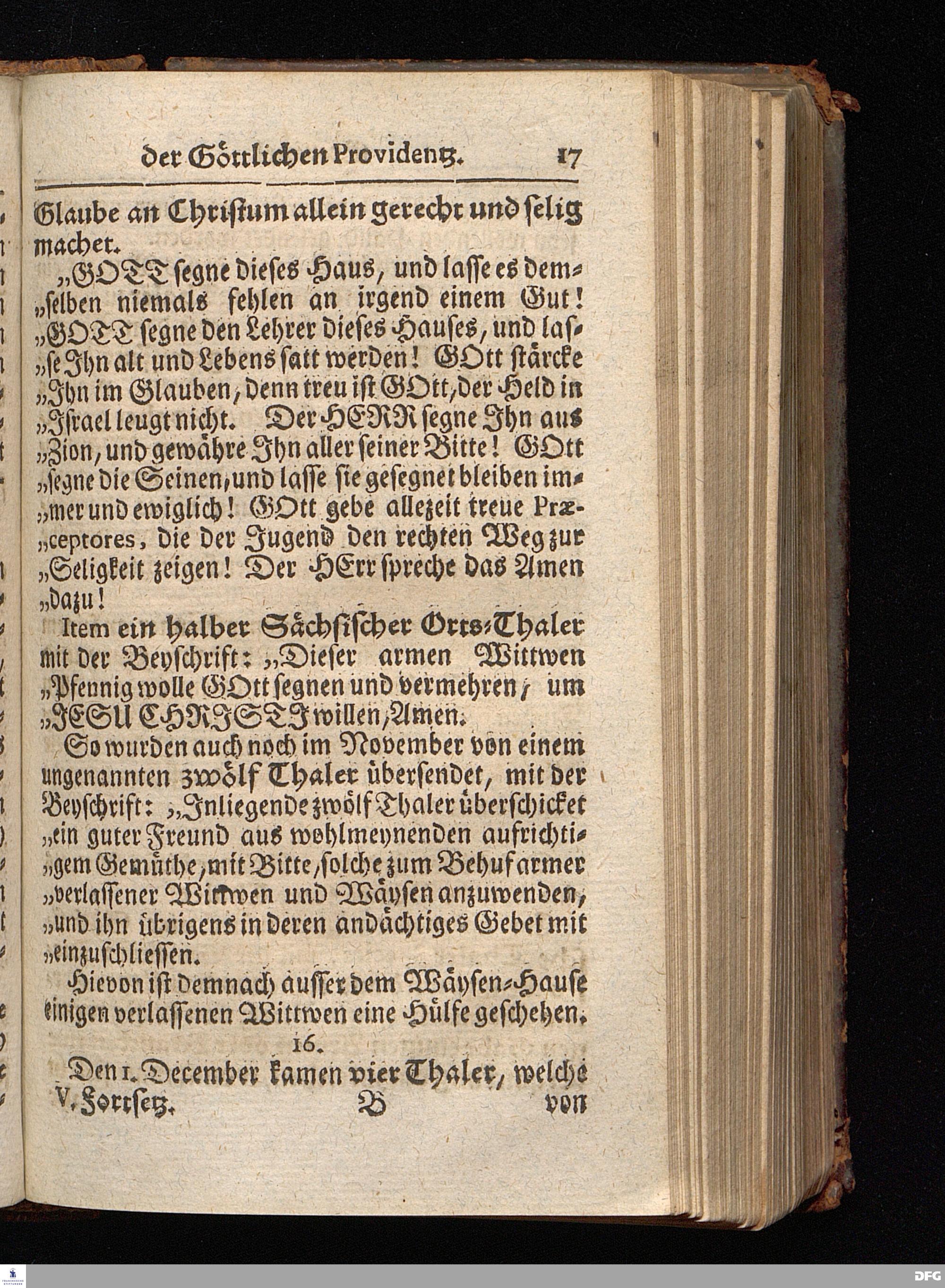 Segens=volle Fußstapfen des noch lebenden und waltenden liebrei=│chen und getreuen GOttes, Zur Beschämung des Unglaubens und Stärckung des Glaubens, entdecket durch eine wahrhafte und umständliche Nachricht von dem Wäysen=Hause und übrigen Anstalten zu Glaucha vor Halle; Welche Im Jahr 1701. zum Druck befördert, ietzo aber zum dritten mal ediret, und bis auf gegenwärtiges Jahr fortgesetzet von August Hermann Francken, S.Theol.Prof.und Past. HALLE, in Verlegung des Wäysen=Hauses, MDCCIX.