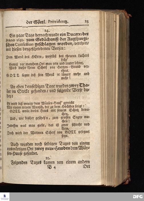 Segens=volle Fußstapfen des noch lebenden und waltenden liebrei=│chen und getreuen GOttes, Zur Beschämung des Unglaubens und Stärckung des Glaubens, entdecket durch eine wahrhafte und umständliche Nachricht von dem Wäysen=Hause und übrigen Anstalten zu Glaucha vor Halle; Welche Im Jahr 1701. zum Druck befördert, ietzo aber zum dritten mal ediret, und bis auf gegenwärtiges Jahr fortgesetzet von August Hermann Francken, S.Theol.Prof.und Past. HALLE, in Verlegung des Wäysen=Hauses, MDCCIX.