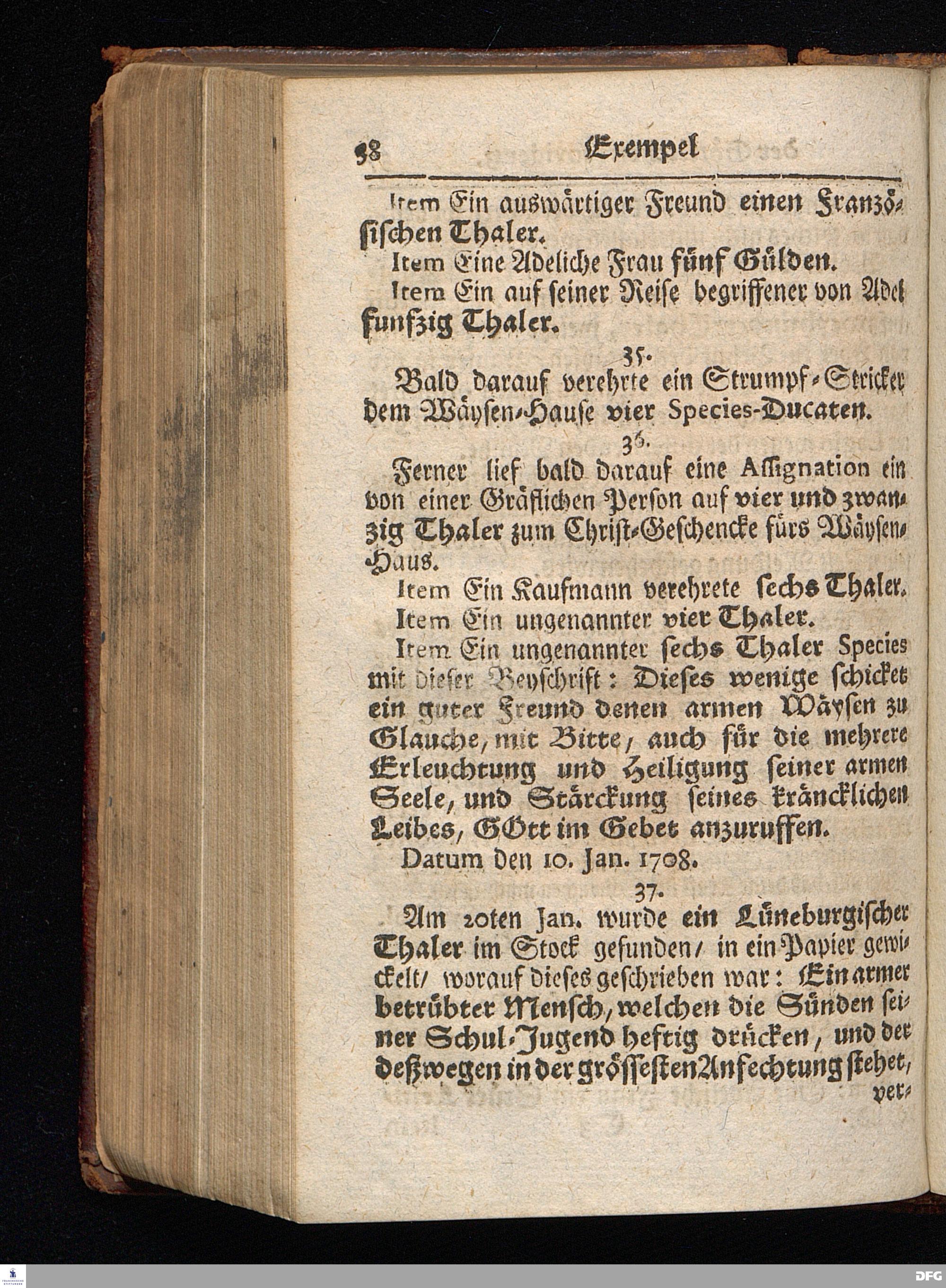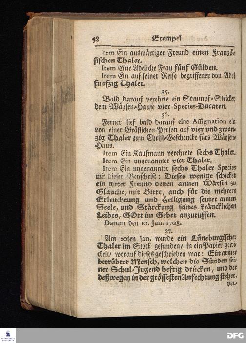 Segens=volle Fußstapfen des noch lebenden und waltenden liebrei=│chen und getreuen GOttes, Zur Beschämung des Unglaubens und Stärckung des Glaubens, entdecket durch eine wahrhafte und umständliche Nachricht von dem Wäysen=Hause und übrigen Anstalten zu Glaucha vor Halle; Welche Im Jahr 1701. zum Druck befördert, ietzo aber zum dritten mal ediret, und bis auf gegenwärtiges Jahr fortgesetzet von August Hermann Francken, S.Theol.Prof.und Past. HALLE, in Verlegung des Wäysen=Hauses, MDCCIX.